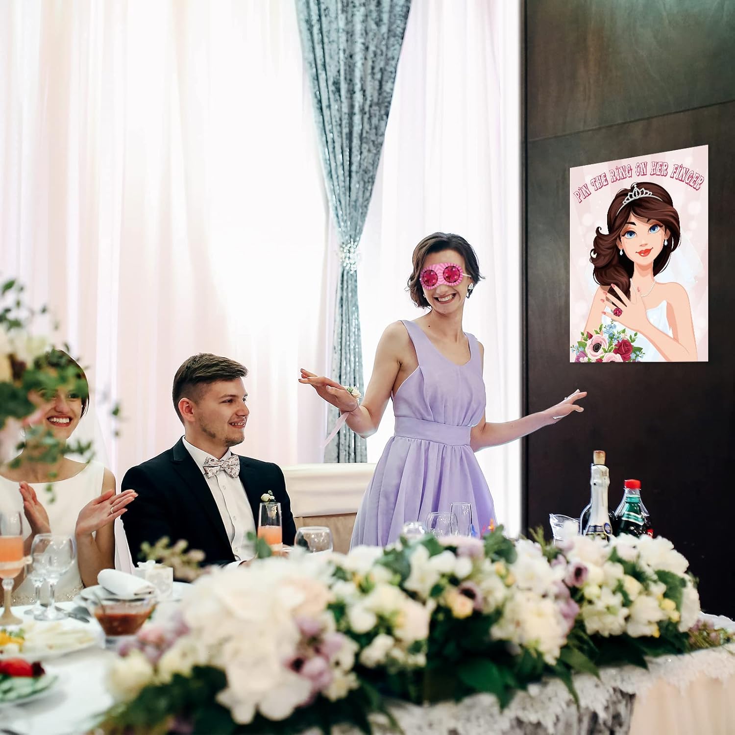 - Simple and funny game to play for bride and bride team! paste bride to be poster on wall and make a line on ground as starting line; Choose one ring sticker and wear blindfold.Go ahead to pin the ring on the bride's finger. Who is more closer who wins