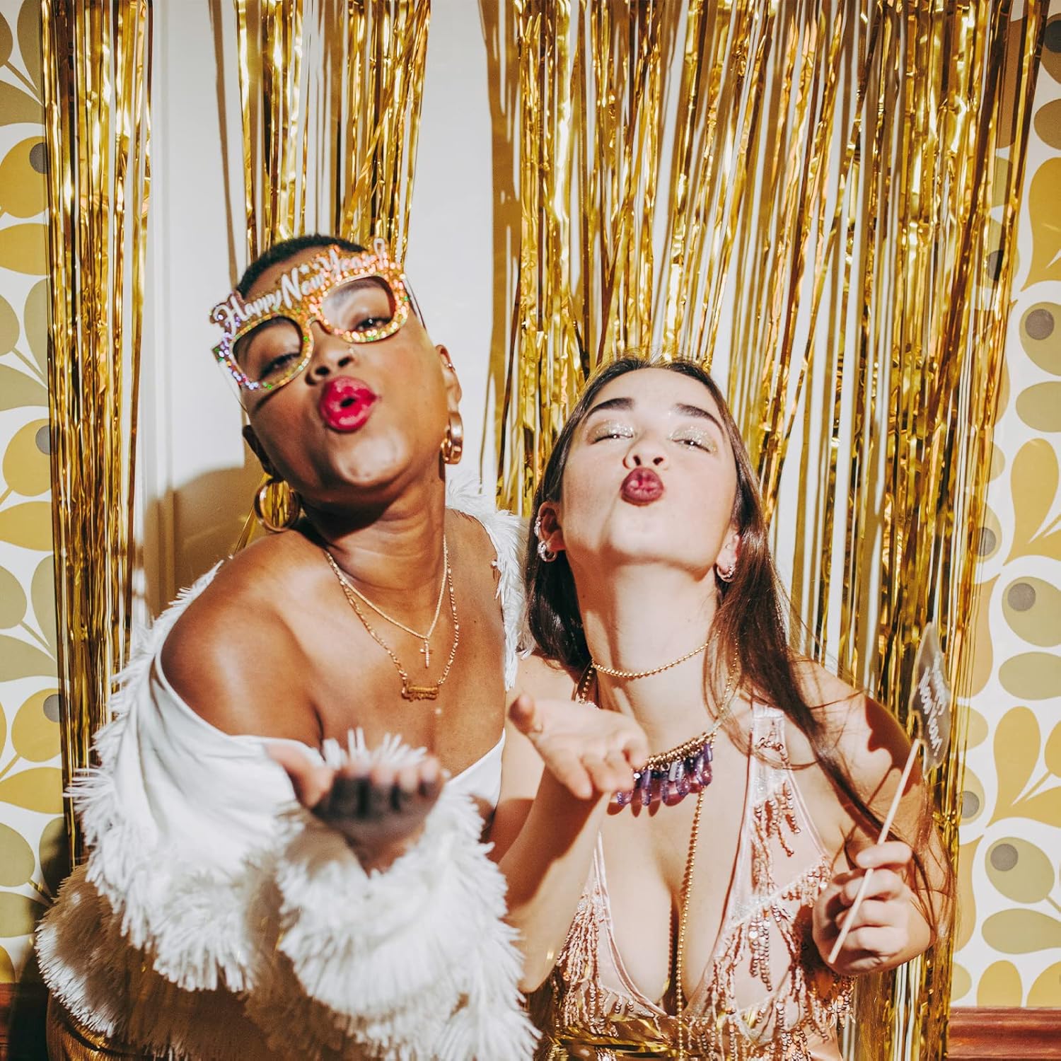 - {Easy to Use}: Easily tear off the double-sided tape on the top and back of the tinsel curtain, and then stick this tassel curtain on the wall, window, table, door or any place you like to brighten up the party. Hang each individual golden tassel curtain in a different position or double layer to get a more perfect effect.