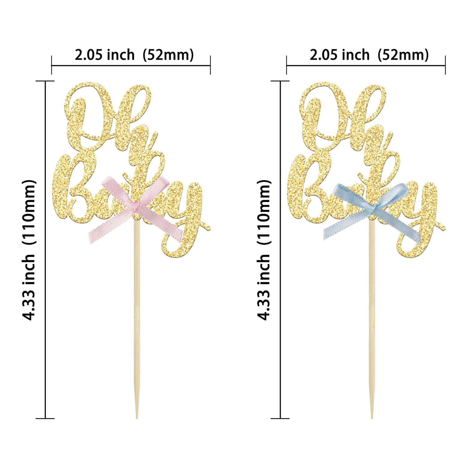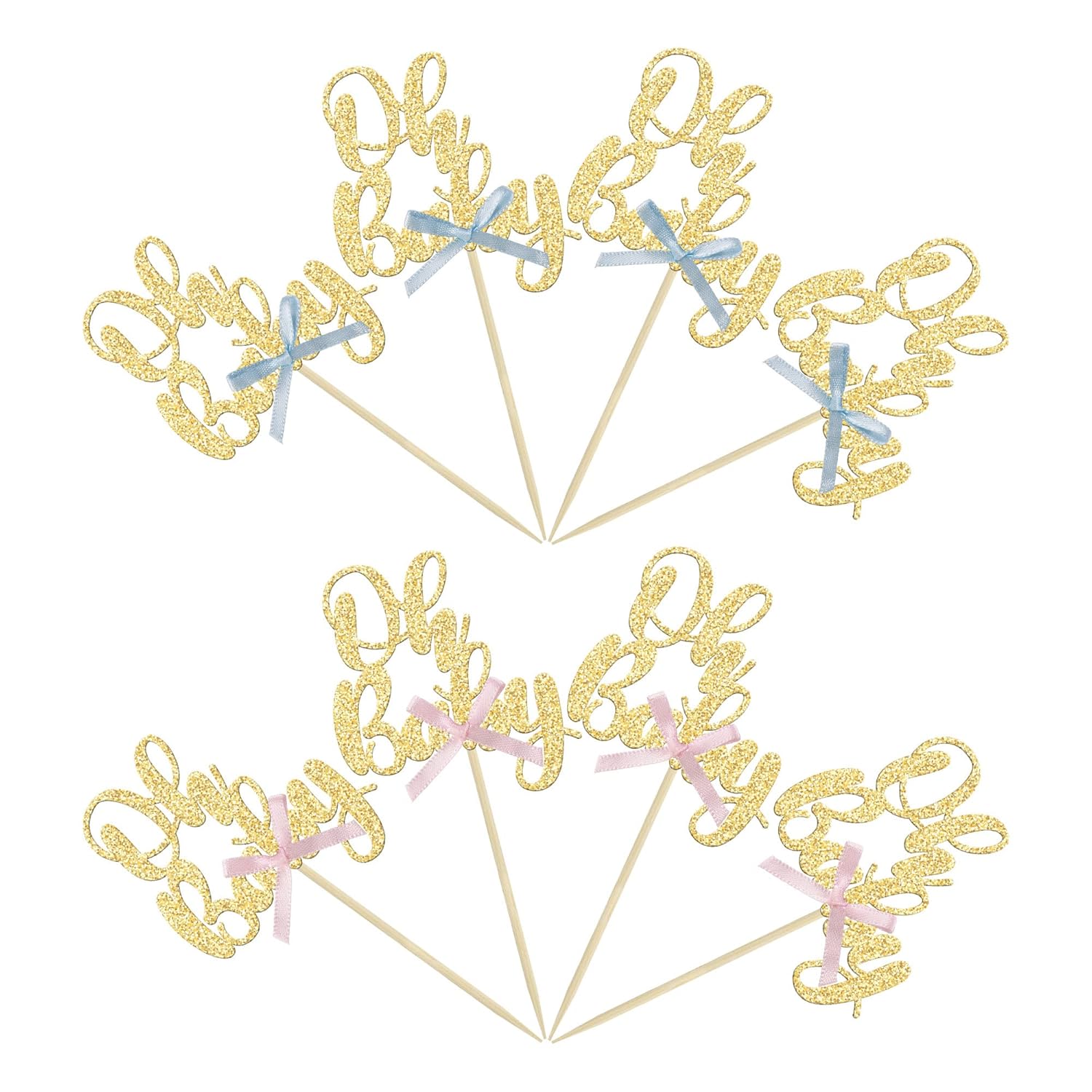 - 💗💗Premium Material: These Gold Oh Baby with Bowknot Cupcake Toppers are made of 300 gram glitter card stock and food-grade toothpick, very safe to put them on cakes, cupcakes, ice cream, fruits, pie, dessert, cheese or any dish and food appetizer you want to decorate.