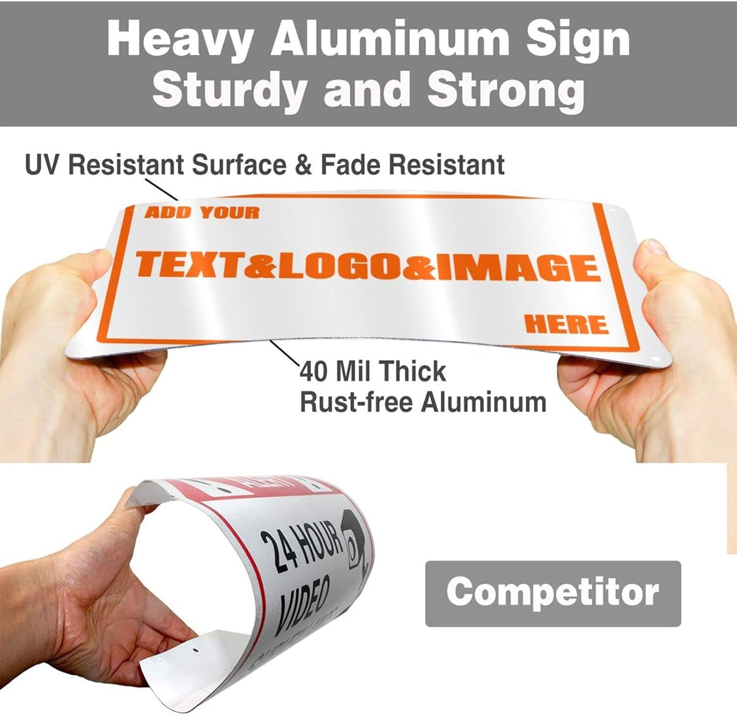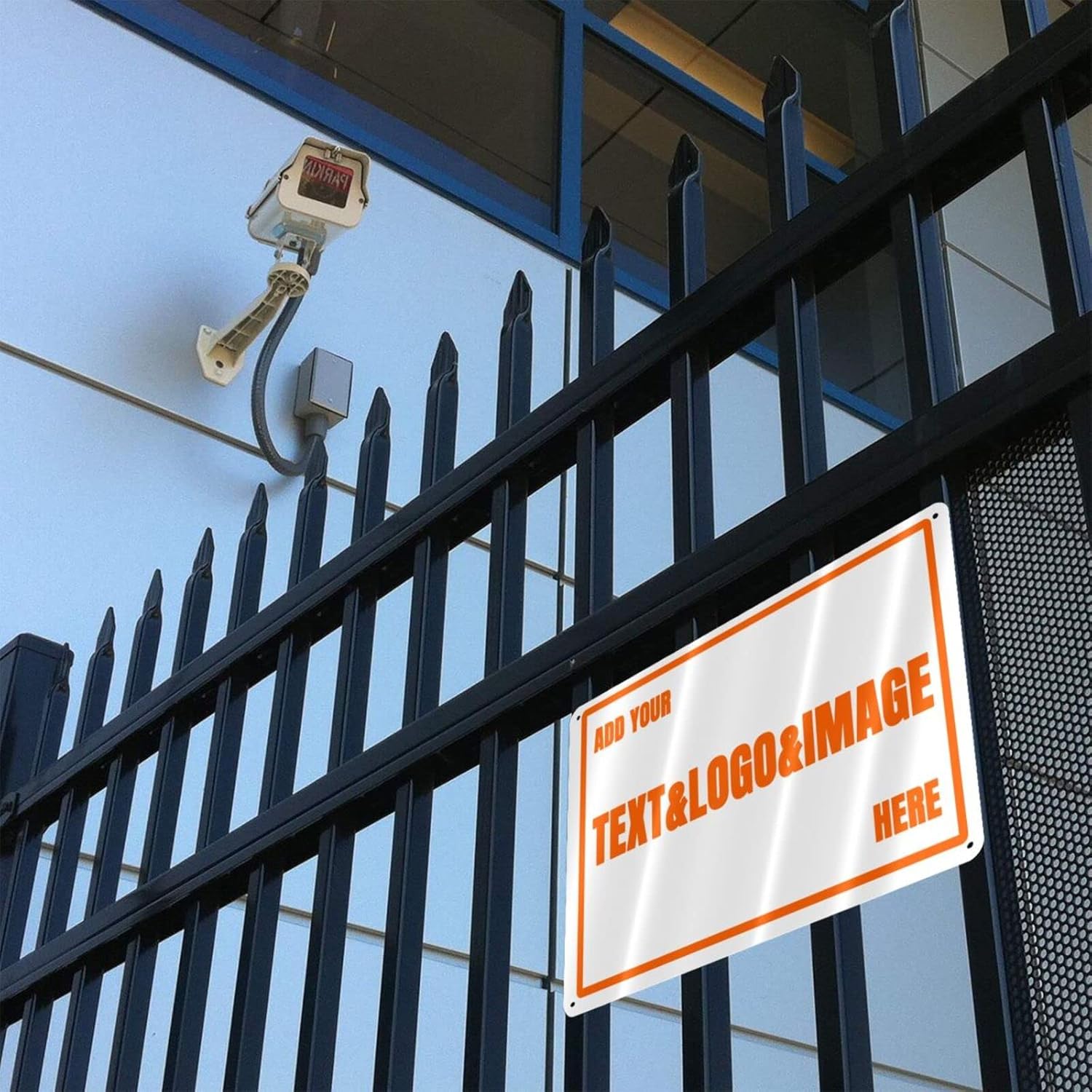 - 12 x 8 inch aluminum custom metal sign with 4 pre-drilled holes on the side that can be easily attached to any surface such as walls, doors or fences with cable ties or screws.