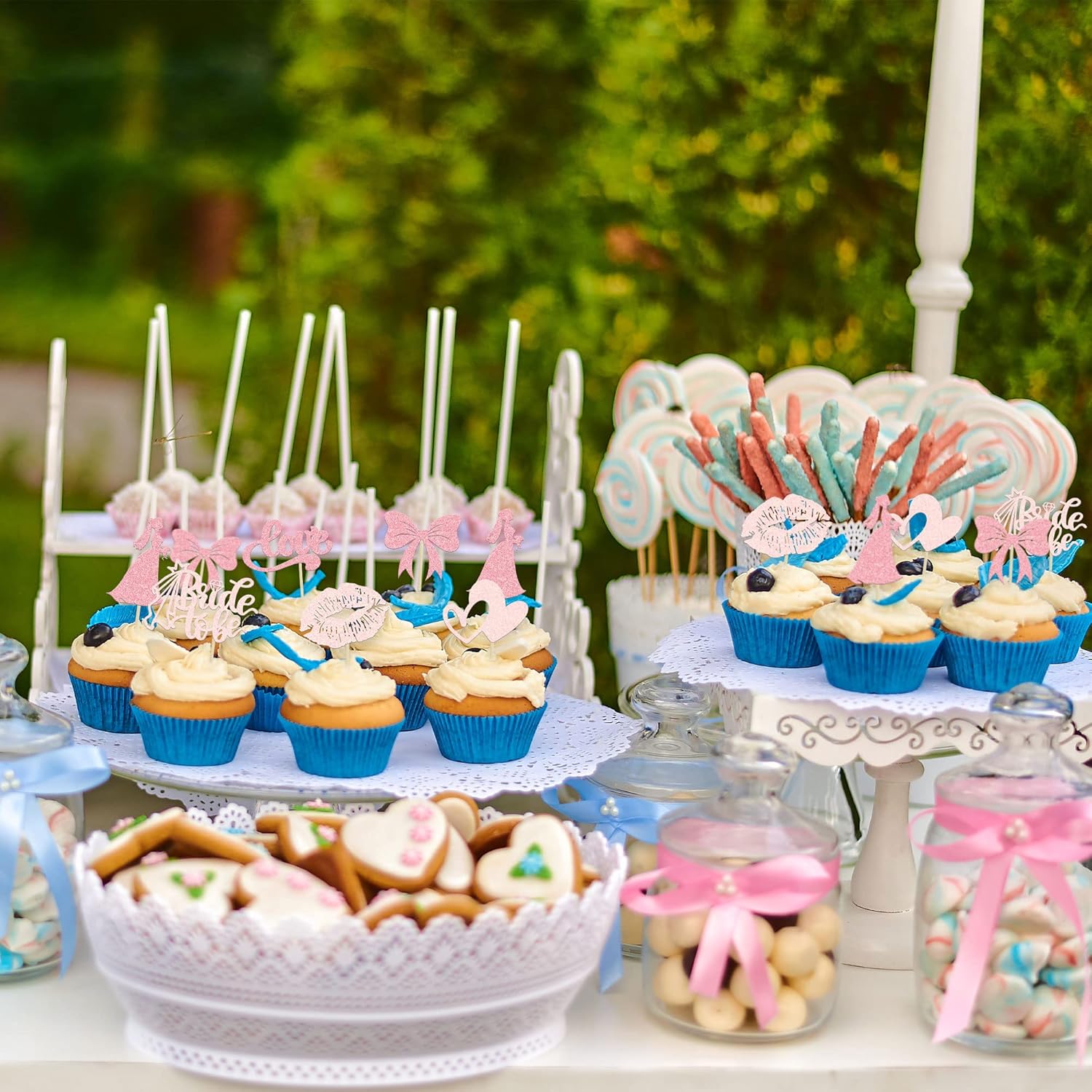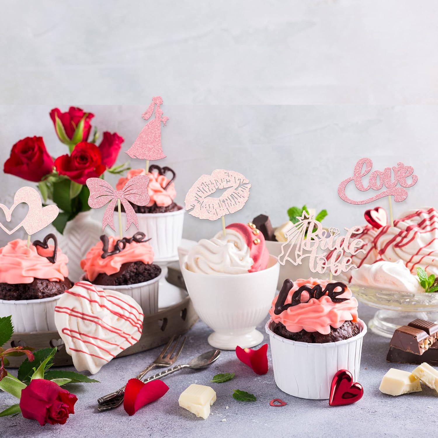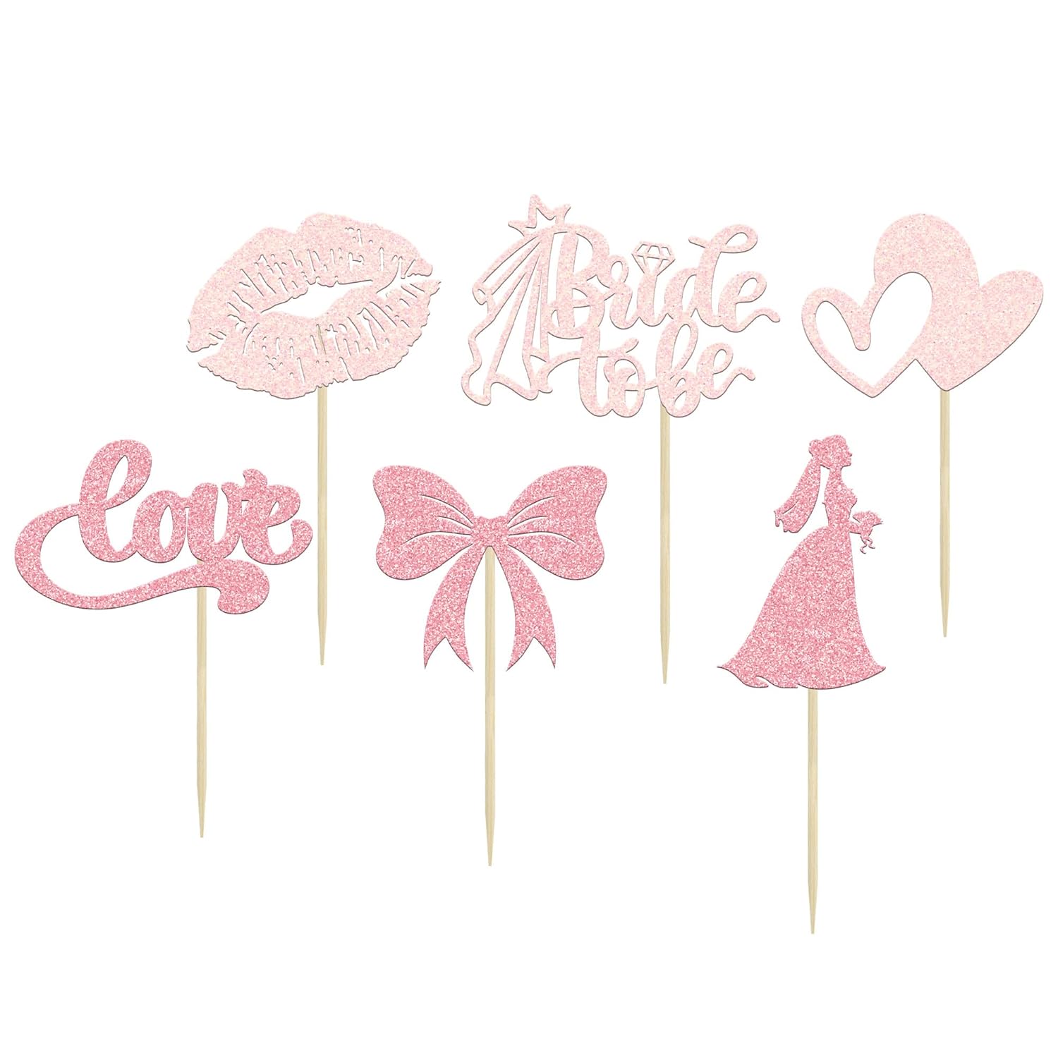 Gyufise 24Pcs Bride to Be Cupcake Toppers Pink Glitter Bow Tie Lip Princess Love Heart Bridal Shower Cupcake Pick Decorations for Wedding Engagement Bachelorette Cake Decorations Supplies