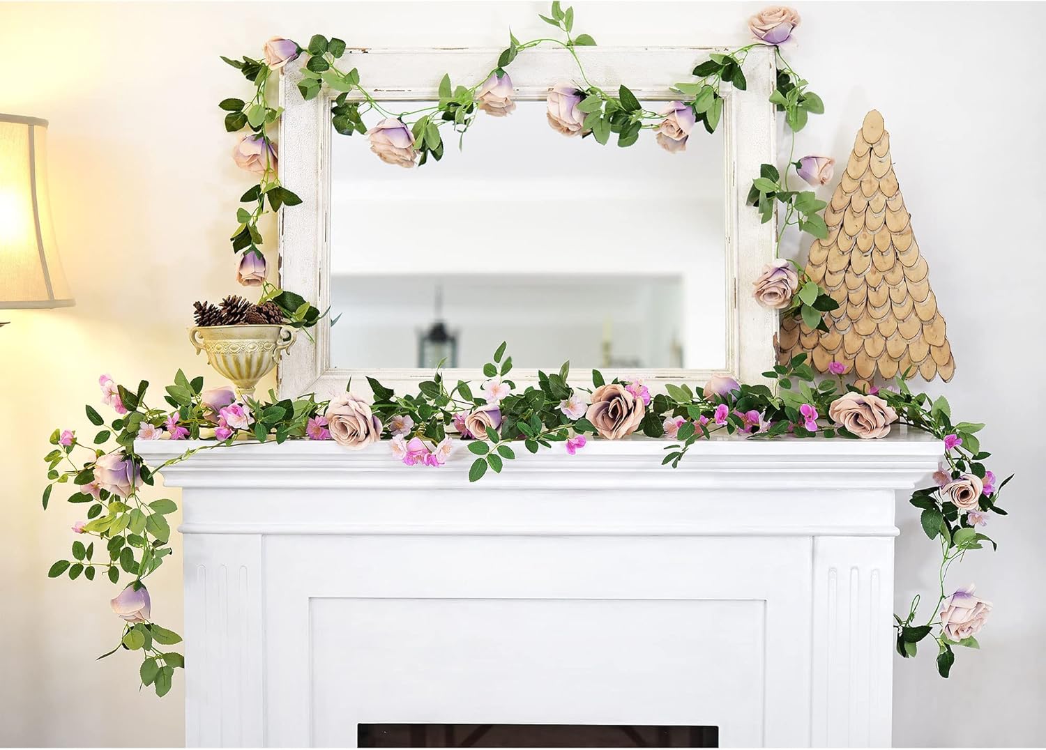 FiveSeasonStuff Smoky Purple Rose Silk Flower Garland Artificial Flowers Decoration Hanging Floral Décor for Wedding Baby Shower Birthday Party Garden 29 Ft 4 Pack