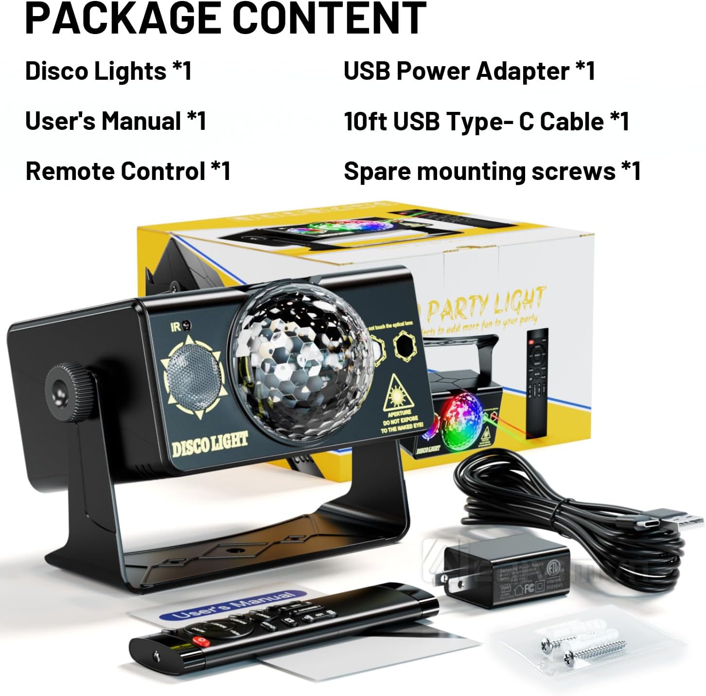 - 🌠Easy to use🌠Party lights dj disco lights plug-and-play, with carrying handle and carrying screws, can be placed on the table, mounted on the ceiling, wall, comes with a 2-meter adapter for 110V-220V and a 3-meter USB cable.