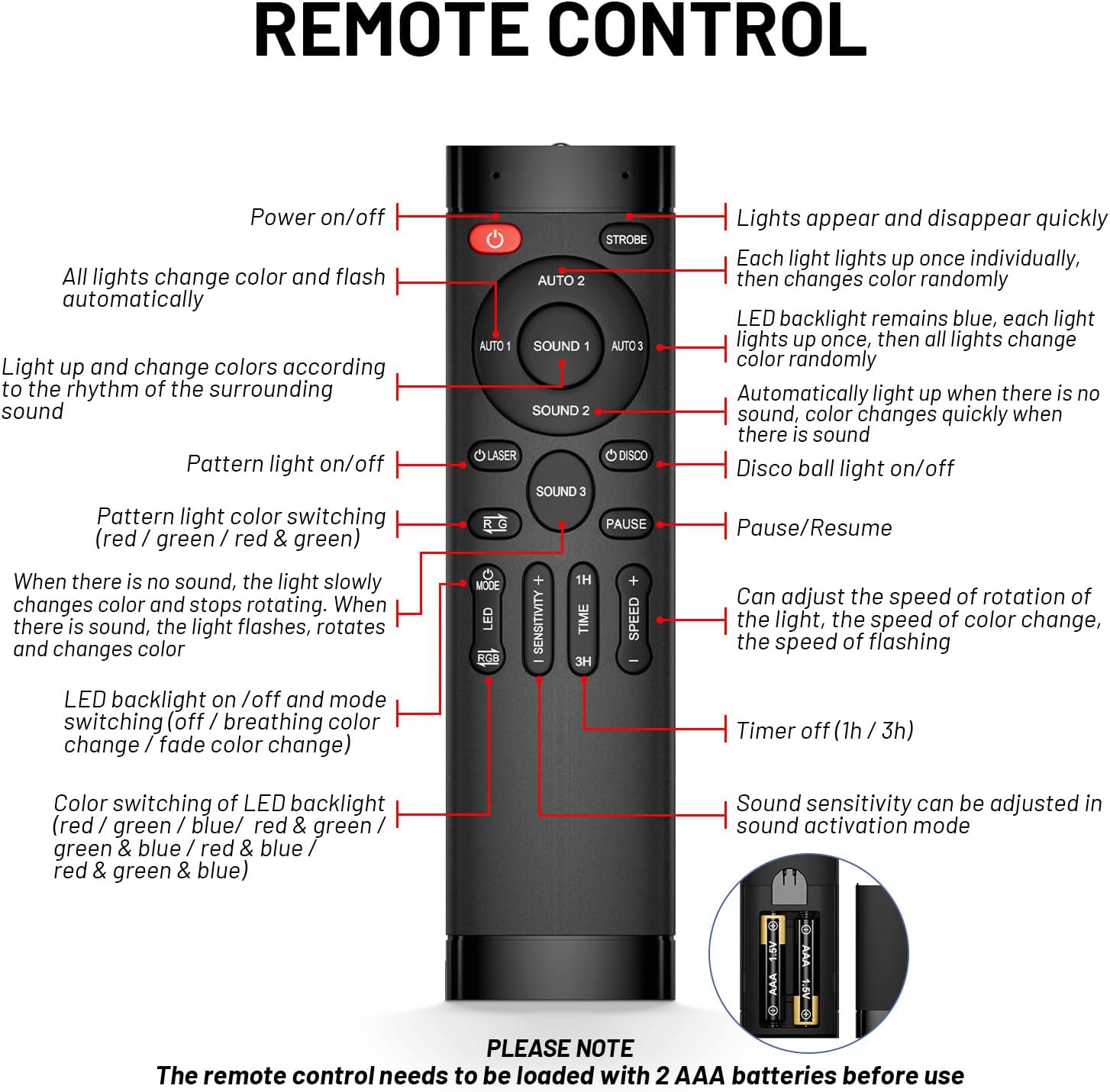 - 🌠Coverage area🌠DJ lights are controlled by remote control on/off and 8 modes, and covers an area of 500 square feet, with cool lighting effects to give the party a wonderful atmosphere.