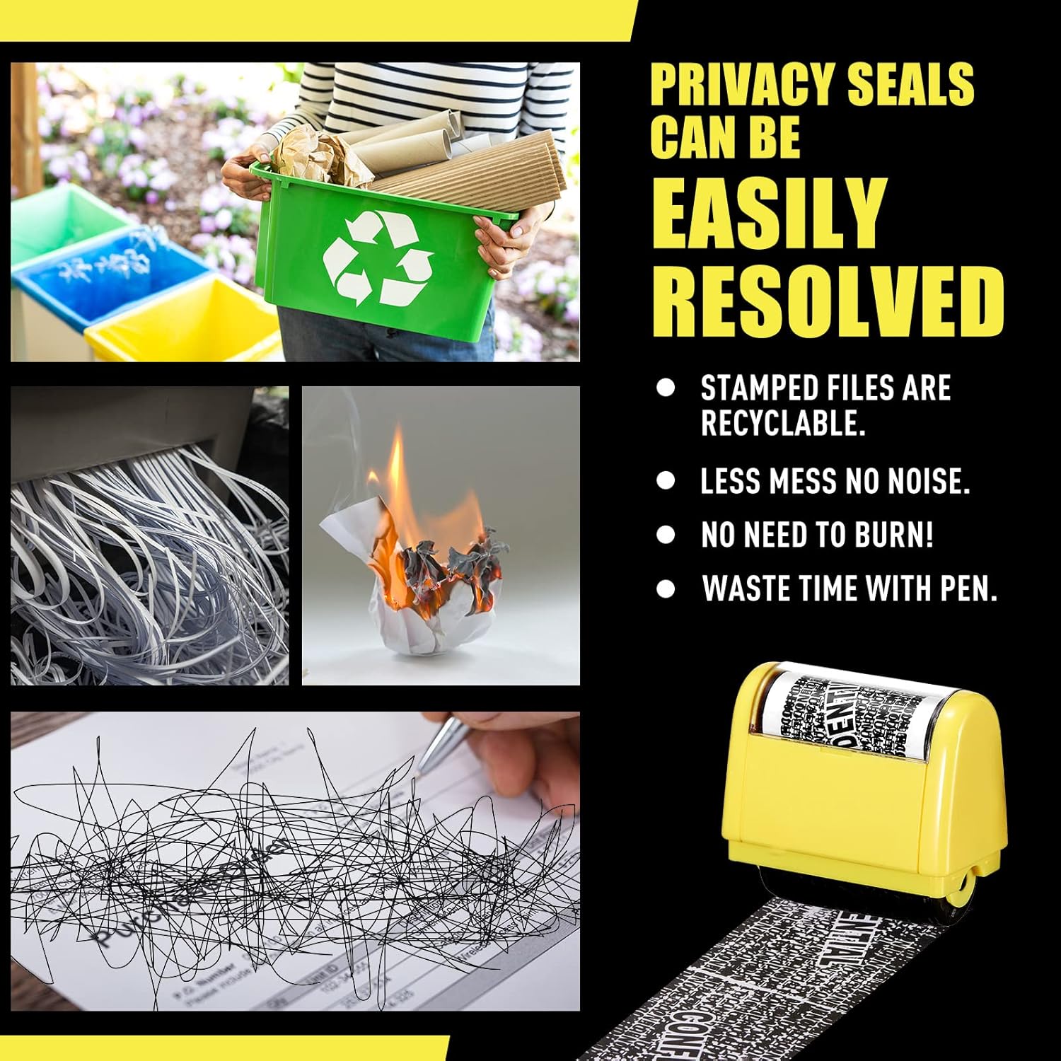 - Save Time and Energy: compared with the shredder, the personal confidential stamp has a small size, easy to carry, can be applied anytime and anywhere. Compared to the marker, it covers a larger area and can be quickly covered with a single swipe. There is no need to worry about whether you can not protect your privacy in time