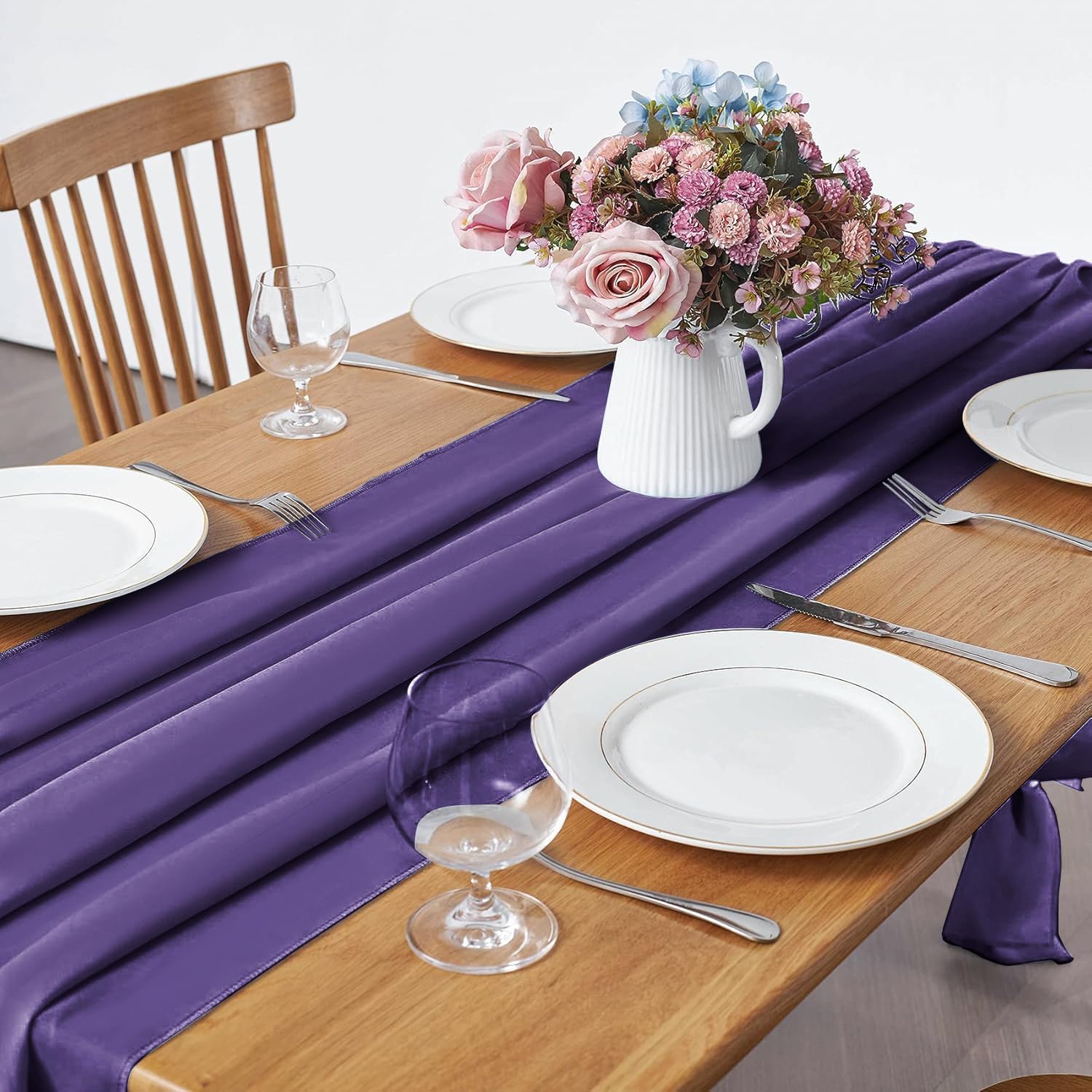5 Pack 10Ft Chiffon Purple Table Runner Sheer 29x120 Inch for Romantic Wedding Decor Bridal & Baby Shower Birthday Rustic Party Decoration