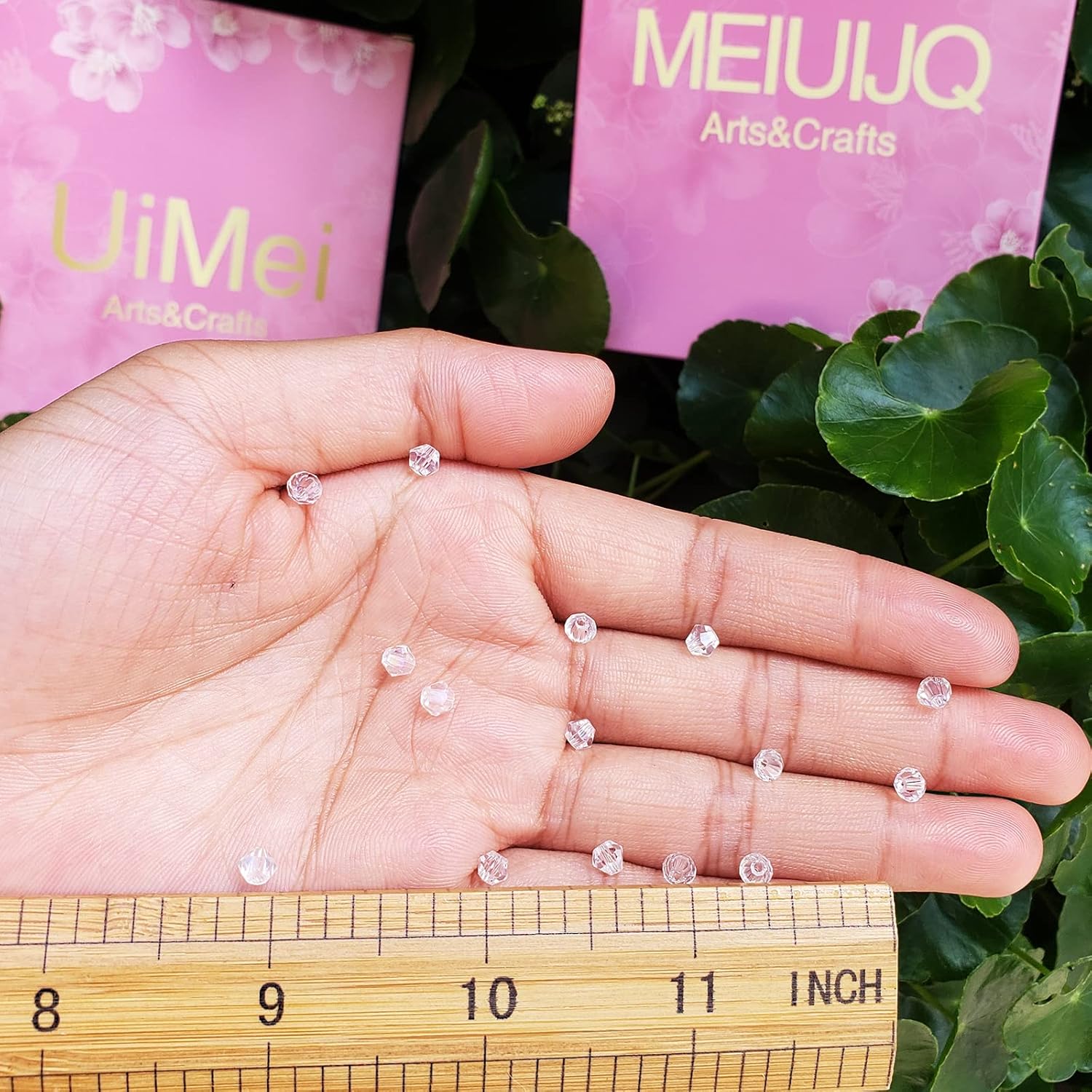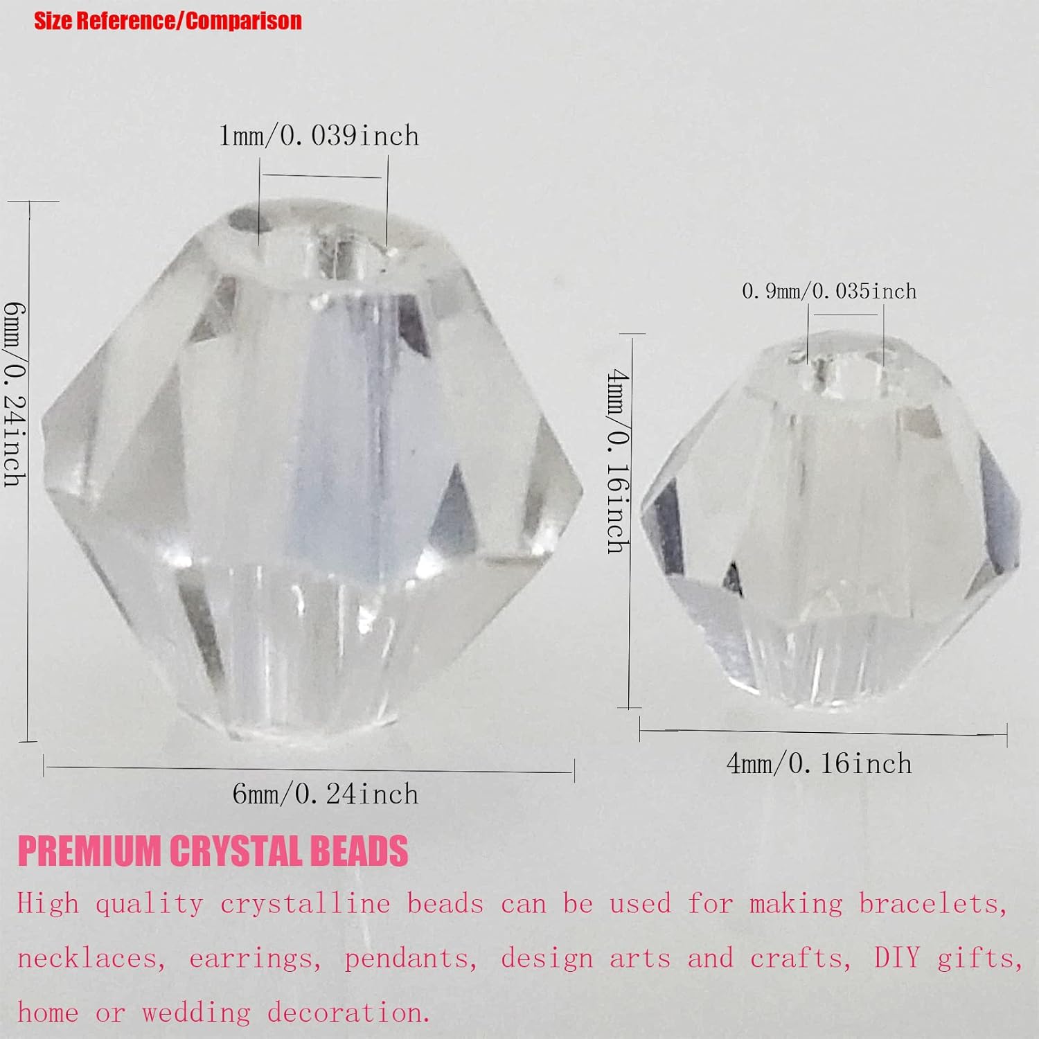 - 【PACKAGING and SIZE】 Package includes 1800Pcs 4mm Bicone faceted crystal glass beads in white AB color.Bead size: 4mm (or ~ 0.16 inch); Hole diameter ~ 0.9mm ( ~ 0.035 inch).In addition, we provide you with some stretchy cord and add an organza bag.Let your family and friends enjoy DIY happy time together.Kindly note: Please make sure this small bead size meets your needs before placing an order,thank you.