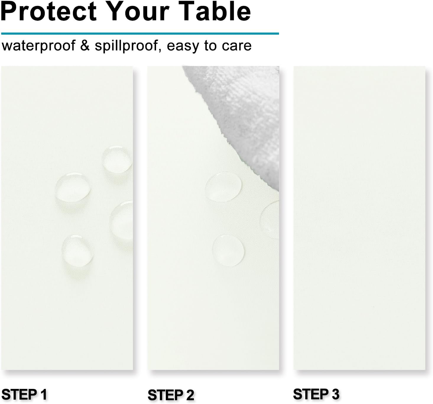 - Waterproof and Spill-proof Table Cloths: Featuring a fade and spill resistant polyester fabric, our tabletop covers easily protect your tables and furniture from scratches, stains and sun rays
