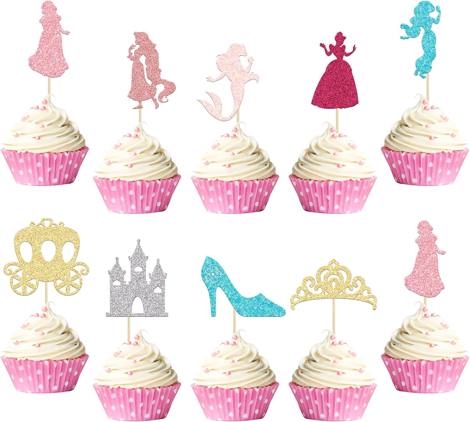 - đź‘‘đź‘‘Premium Material: These Colorful Princess Cupcake Toppers are made of high quality 300 gram card stock and food-grade toothpick, very safe to put them on cakes, cupcakes, ice cream, fruits, pie, dessert, cheese or any dish and food appetizer you want to decorate princess party decorations.