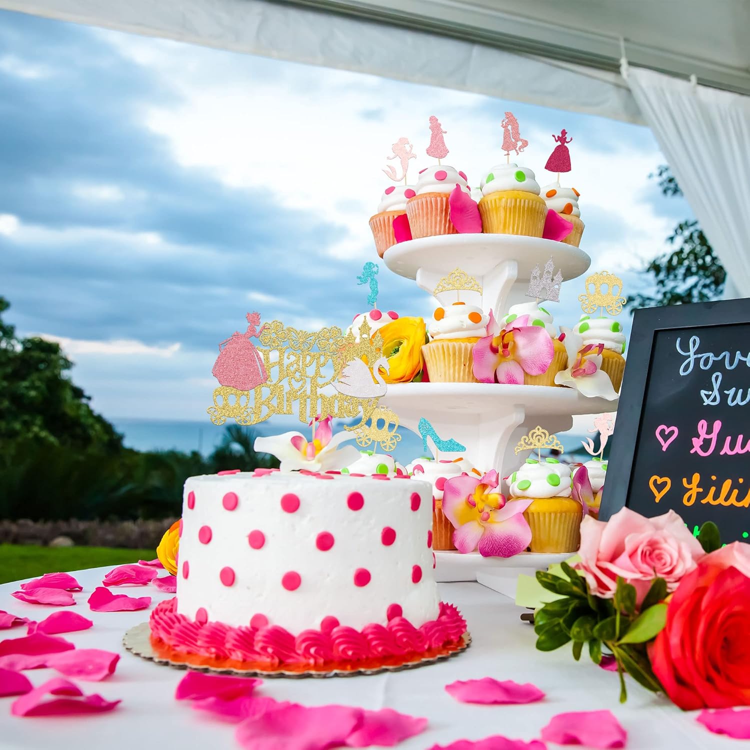 - đź‘‘đź‘‘Widely Application: Unique personalized propose princess theme design. Best party cake decor which can be used at babyshower theme birthday Party Decorations, and other similar theme parties.