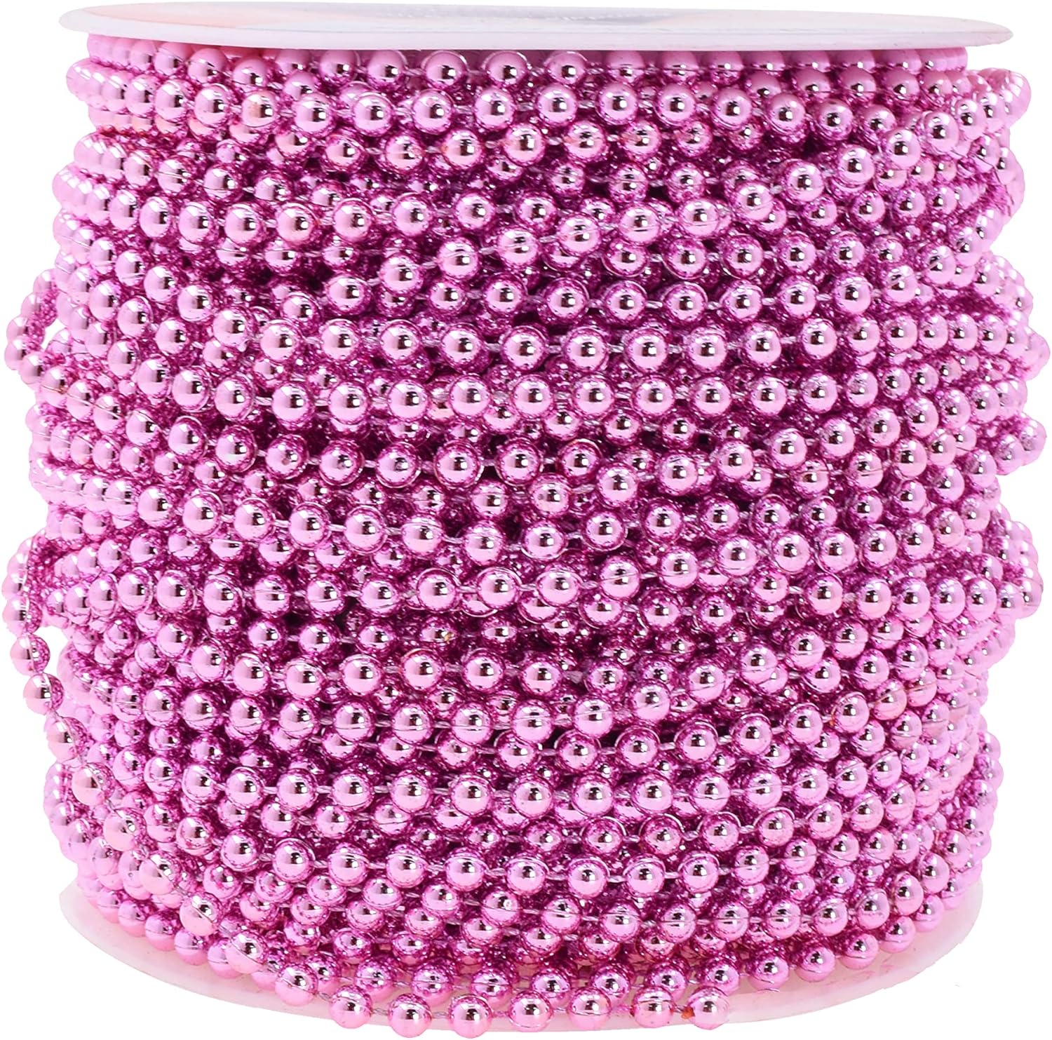 Mandala Crafts Faux Pink Pearl Beads Garland - 4mm 44 Yds Pink Pearl Strands Spool Pearl String Bead Roll for Wedding Party Christmas Tree Decoration