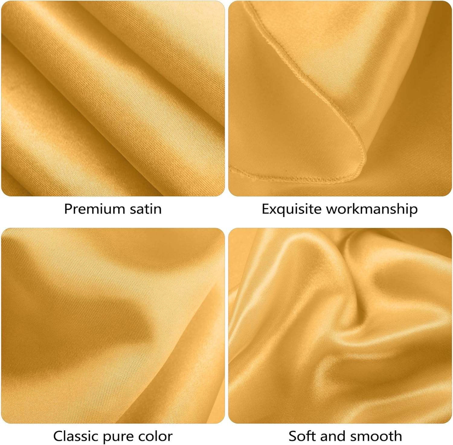 - What you will receive: the package comes with 1 piece of oversized gold satin table overlay cover, with the simple but elegant design, the basic solid color is hardly out of date, our satin tablecloth will bring a modern twist to your table's settings and let your tables sparkle brightly, boldly, and beautifully