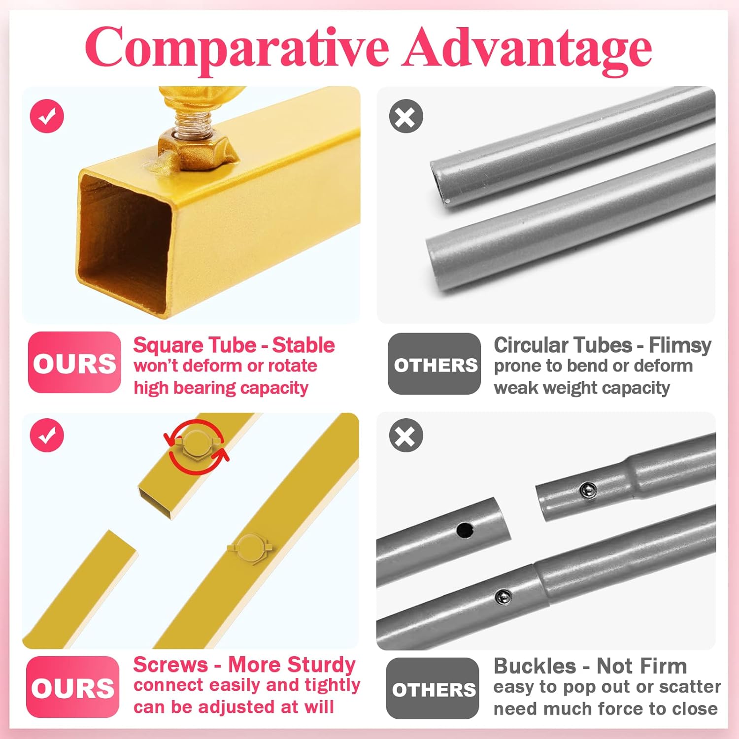 - 【Wide Application】Square gold wedding arch stand is suitable for wedding, bridal shower, photo booth backdrops, Birthday party, garden, school opening ceremonies, graduation party decoration, christmas decoration, New Years Decoration and Photography.