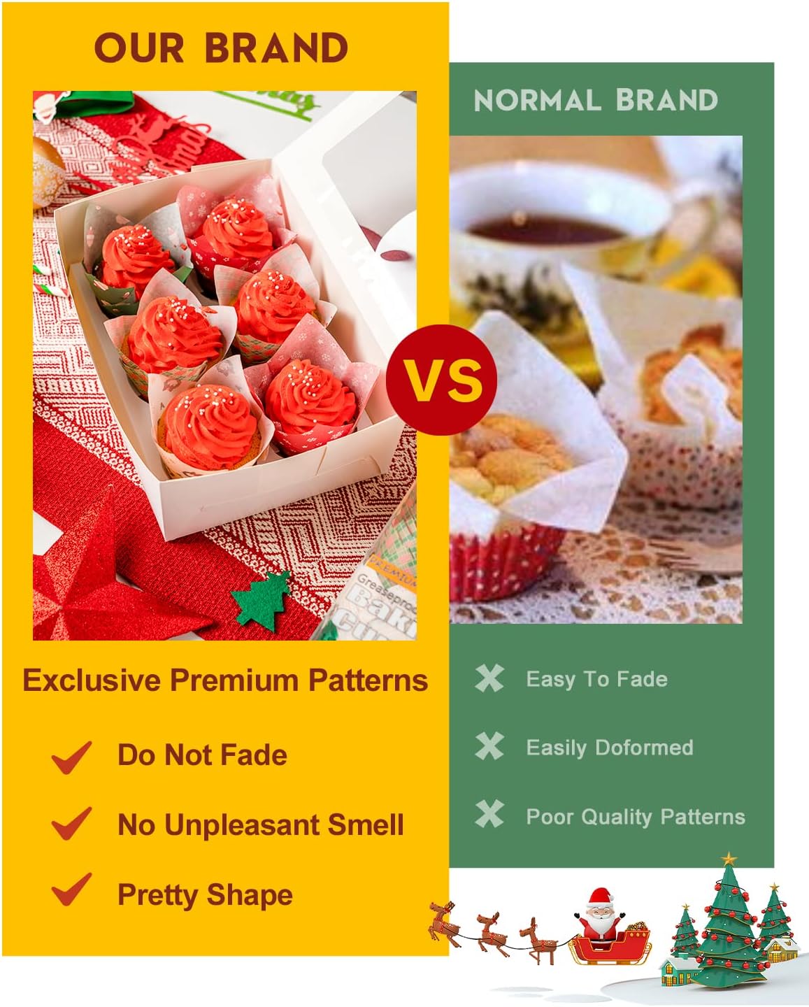 Katbite Christmas Tulip Cupcake Liners 200PCS, Muffin Baking Cupcake Liners Holders
