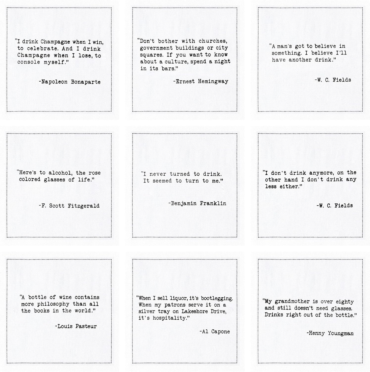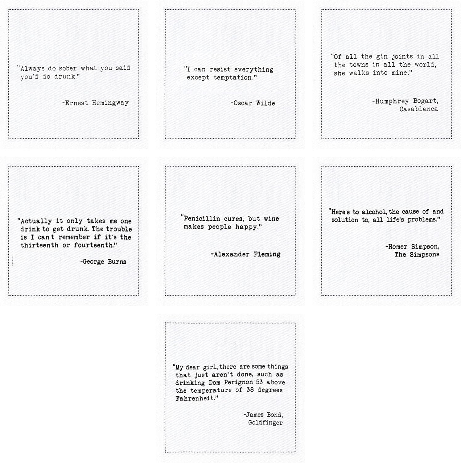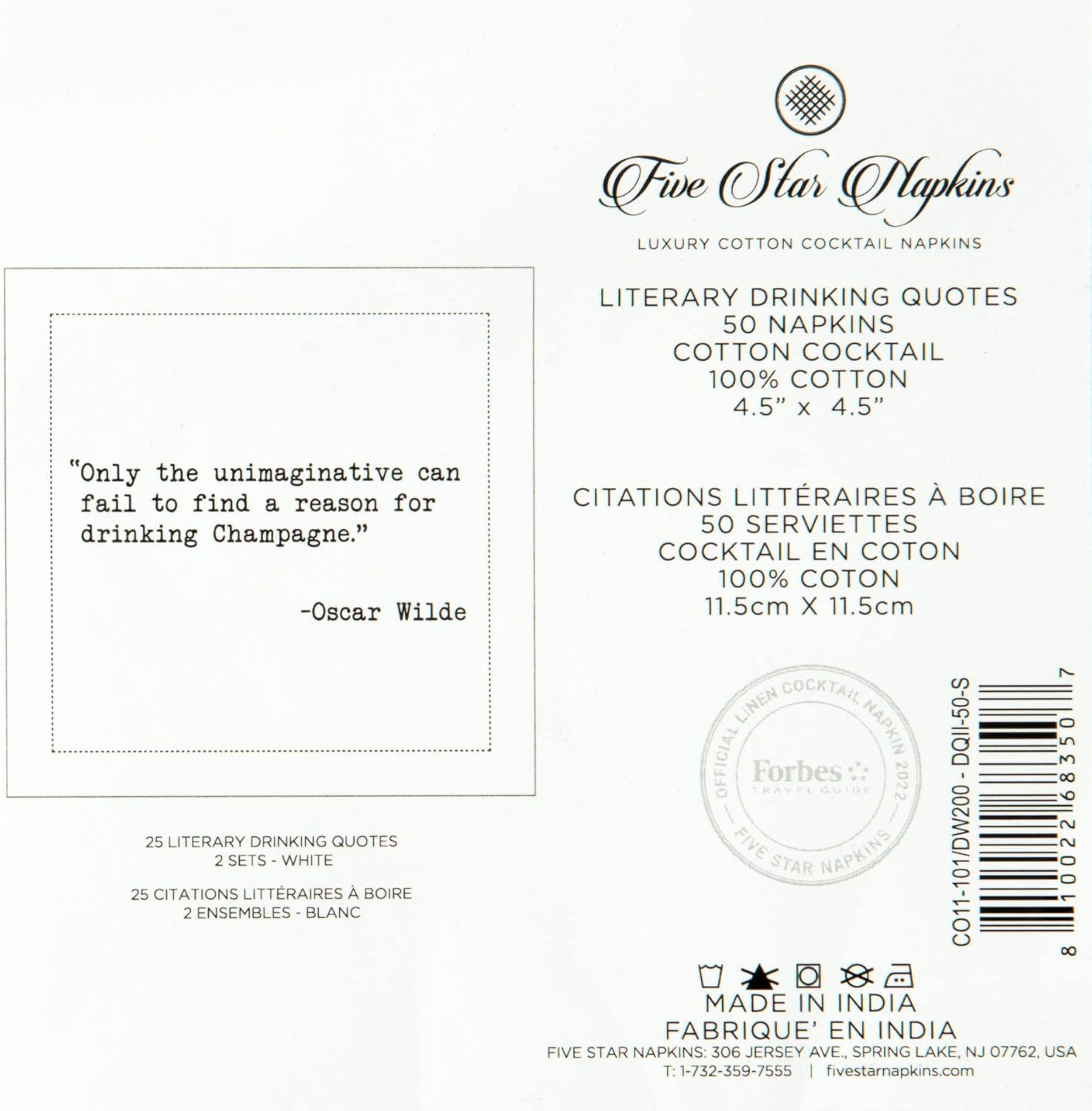Five Star Napkins Literary Bar Quotes White Cotton Cocktail Napkins, Beverage Napkins, Bar Napkins, Cloth Napkins, Party Napkins, Holidays, Weddings, Birthdays, Disposable, 4.5" x 4.5"- (50x)