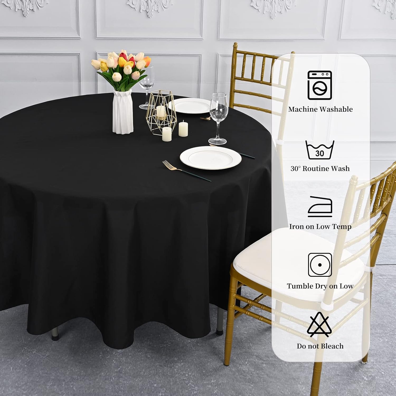 - 【Exquisite Workmanship】: REWOMC tablecloth is made by skilled artisans. The black round tablecloths are designed with folded borders and fine stitching to ensure an elegant look and no loose threads. Our color-fast dyes stay vibrant and true, and will not fade or transfer during washing or use. Can be withstand repeated use and frequent laundering.