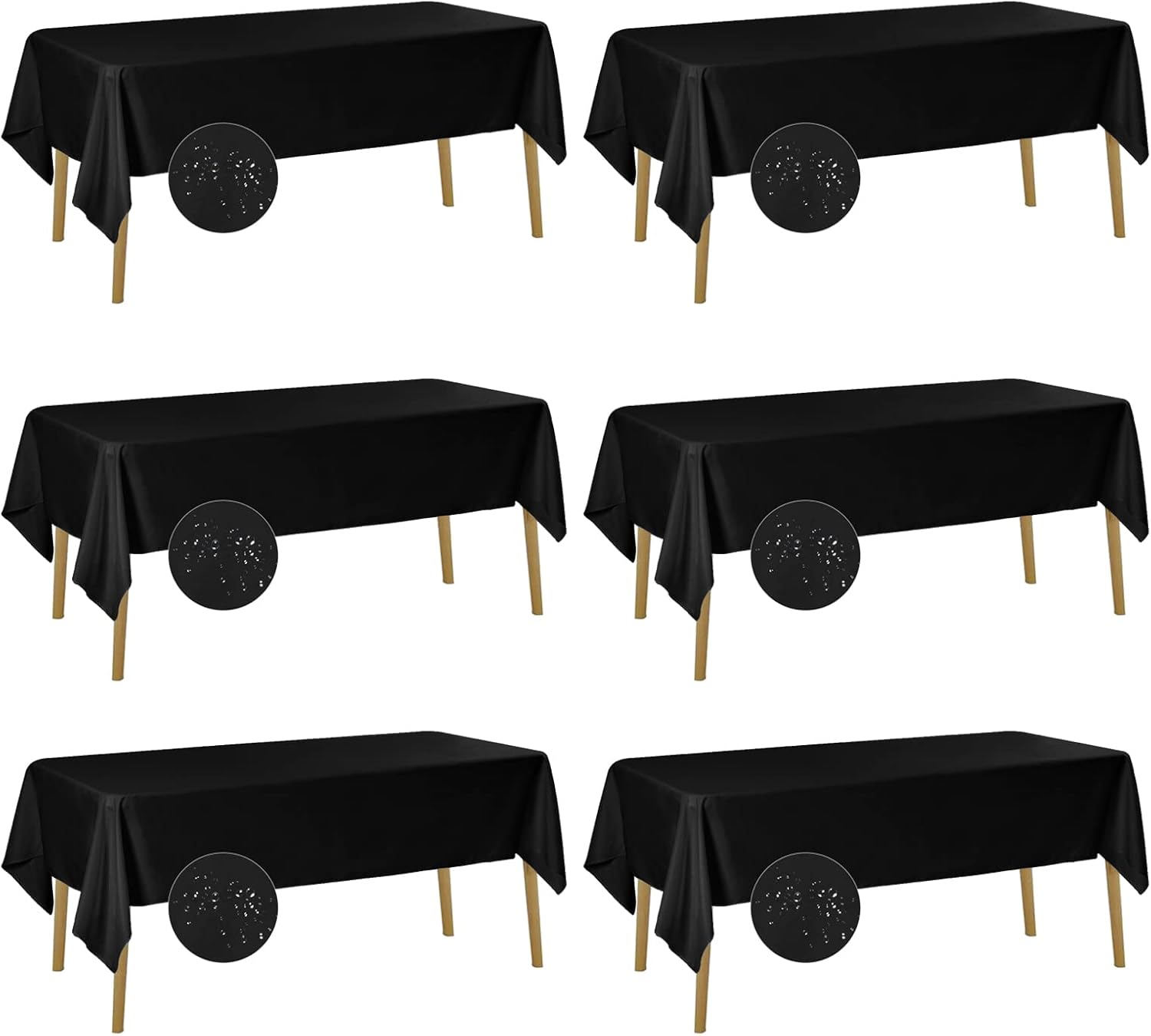 Fokitut 6 Pack Waterproof Rectangle Tablecloth, 60x120 Inch,Stain Resistant and Wrinkle Polyester Table Cloth, Fabric Table Cover for Kitchen Dining, Wedding, Party, Holiday Dinner-Black