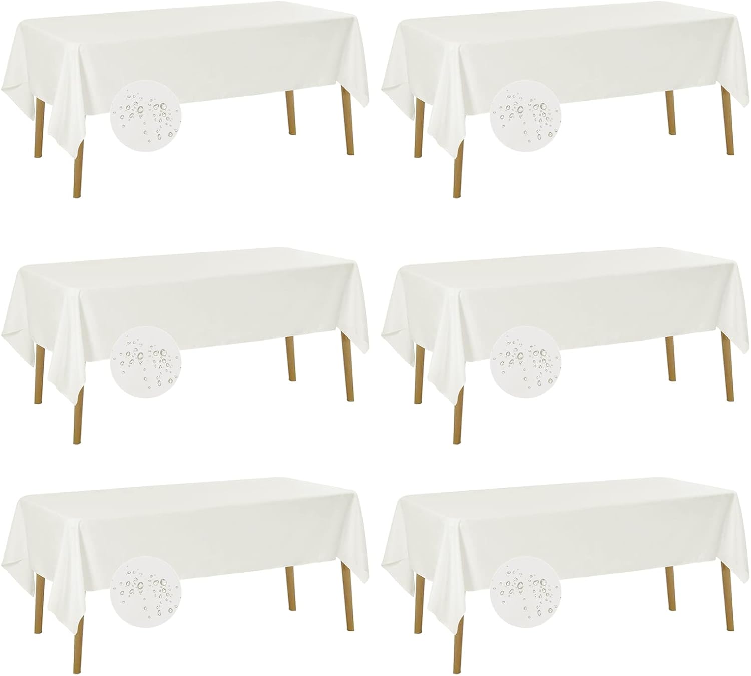 Fokitut 6 Pack Waterproof Rectangle Tablecloth, 60x102 Inch, Stain Resistant and Wrinkle Polyester Table Cloth, Fabric Table Cover for Kitchen Dining, Wedding, Party, Holiday Dinner-Ivory