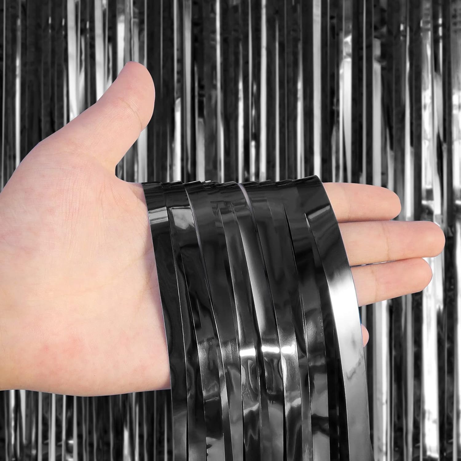 - Sparkling Fringe Curtains: 2 packs foil fringe curtains. Each pack fringe curtains size is 3.28 x 8 ft. DIY party decorations according to your needs