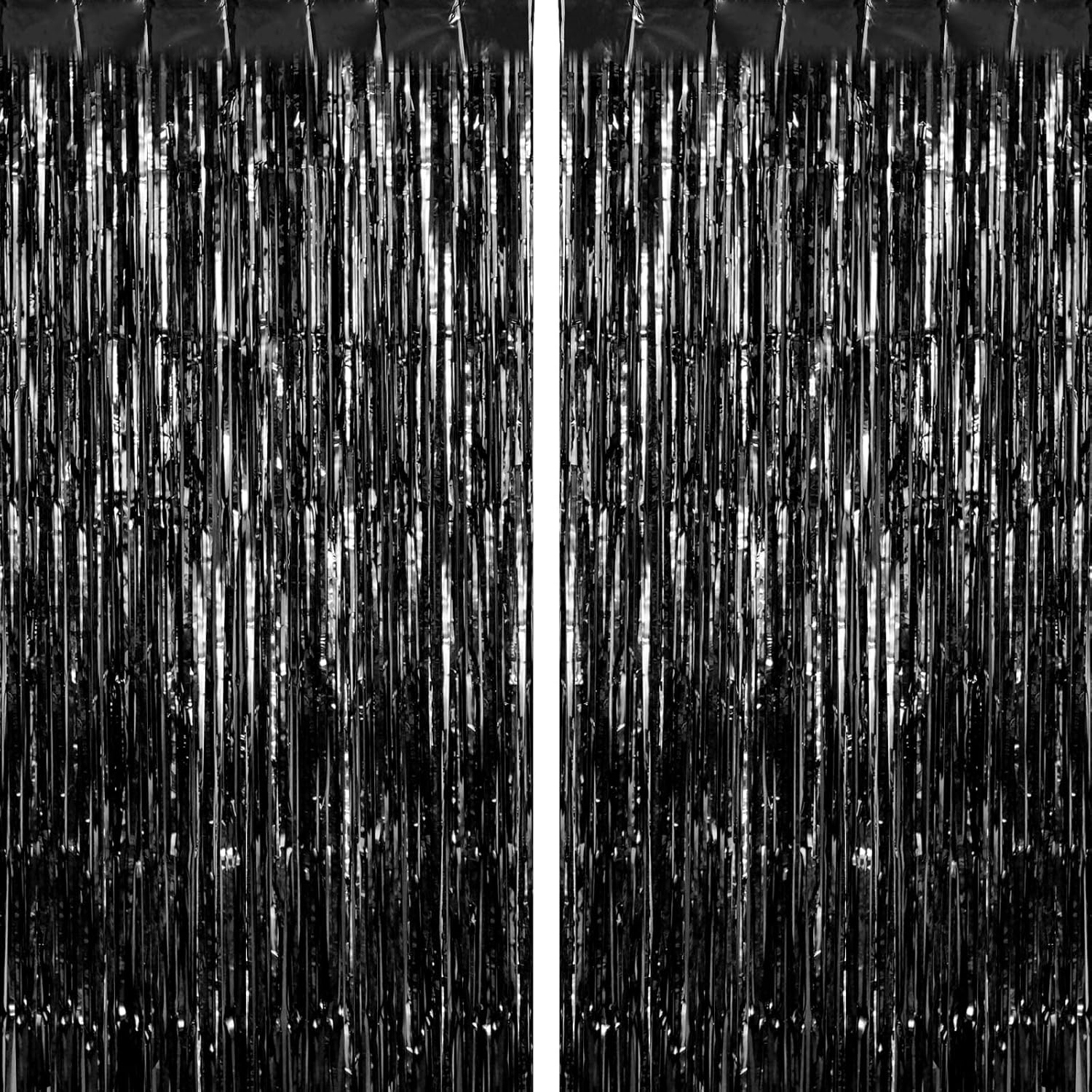 2 Pack Black Fringe Curtains Foil Shiny Fringe Backdrop Tinsel Door Streamers Foil Curtains for Birthday Wedding Engagement Bridal Shower Celebration Party Decorations Large