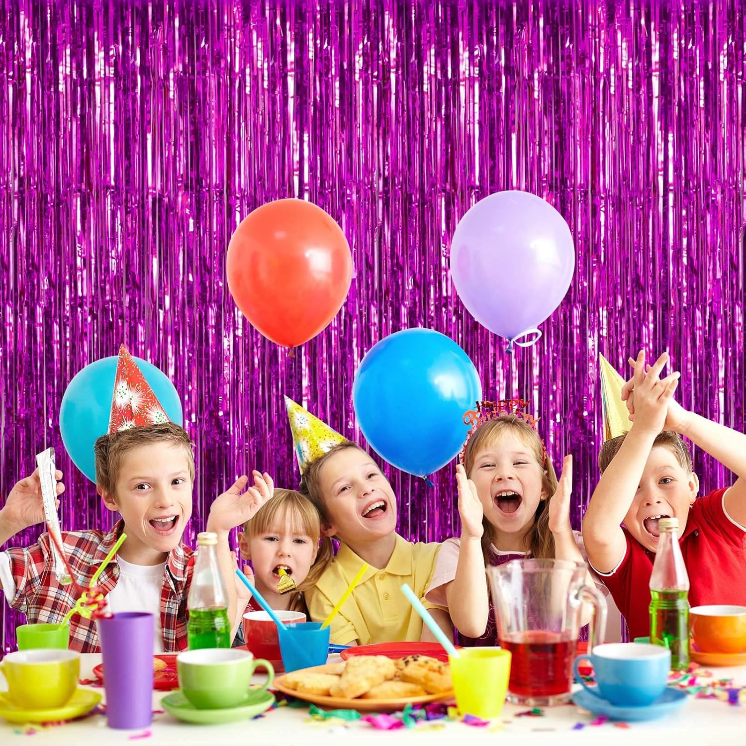 - Unique Materials: Made of unique foil materials. Shiny party streamers. Delicate fringe backdrops for decorating doors, walls, windows