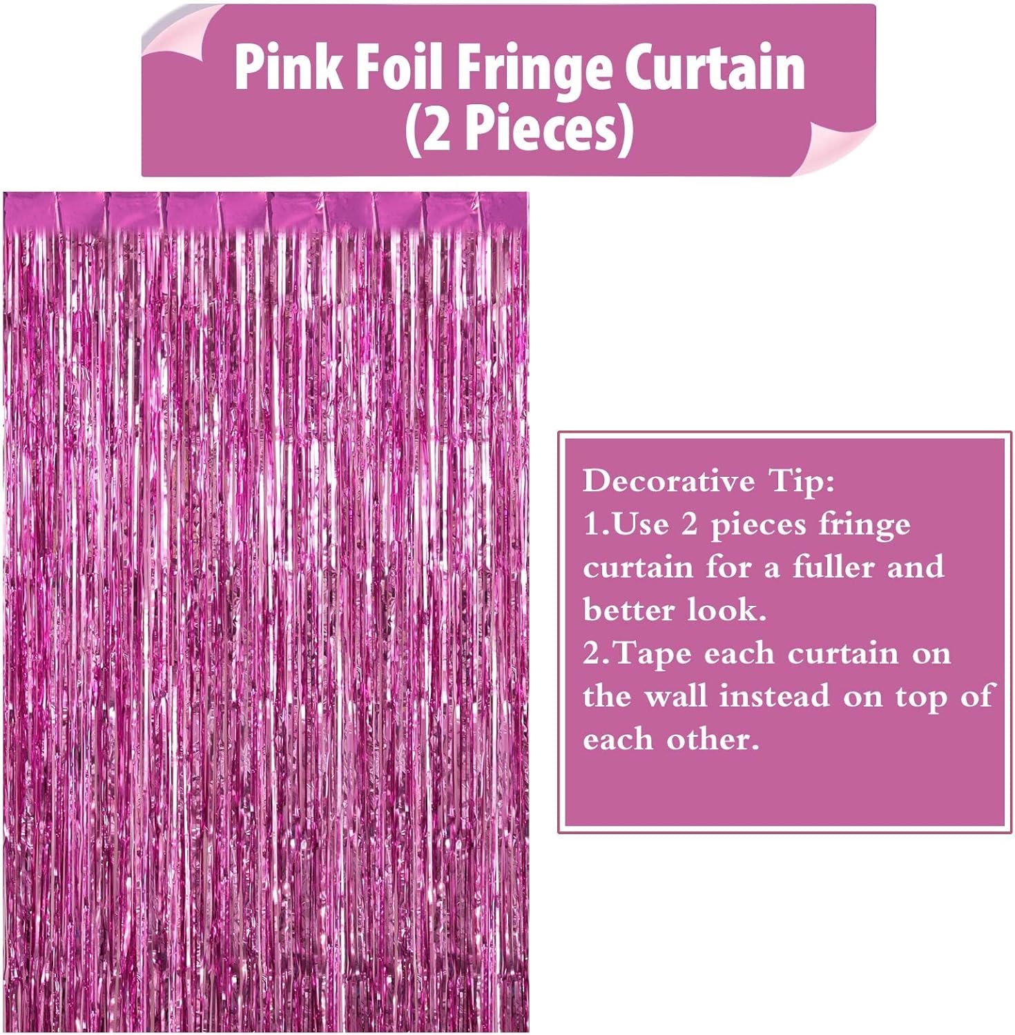 - Sparkling Fringe Curtains: 2 packs foil fringe curtains. Each pack fringe curtains size is 3.28 x 8 ft. DIY party decorations according to your needs