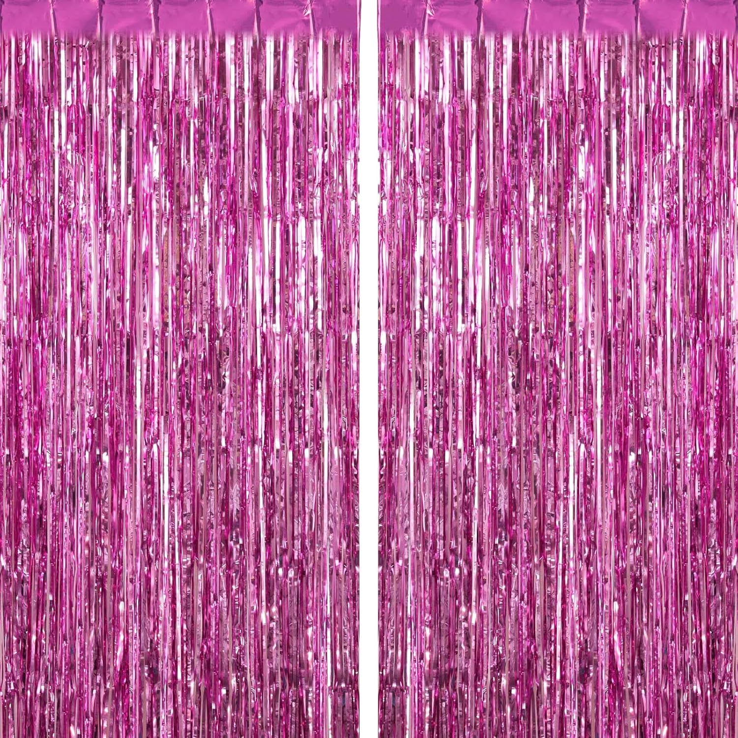 2 Pack Pink Fringe Curtains Foil Shiny Fringe Backdrop Tinsel Door Streamers Foil Curtains for Birthday Wedding Engagement Bridal Shower Celebration Party Decorations Large