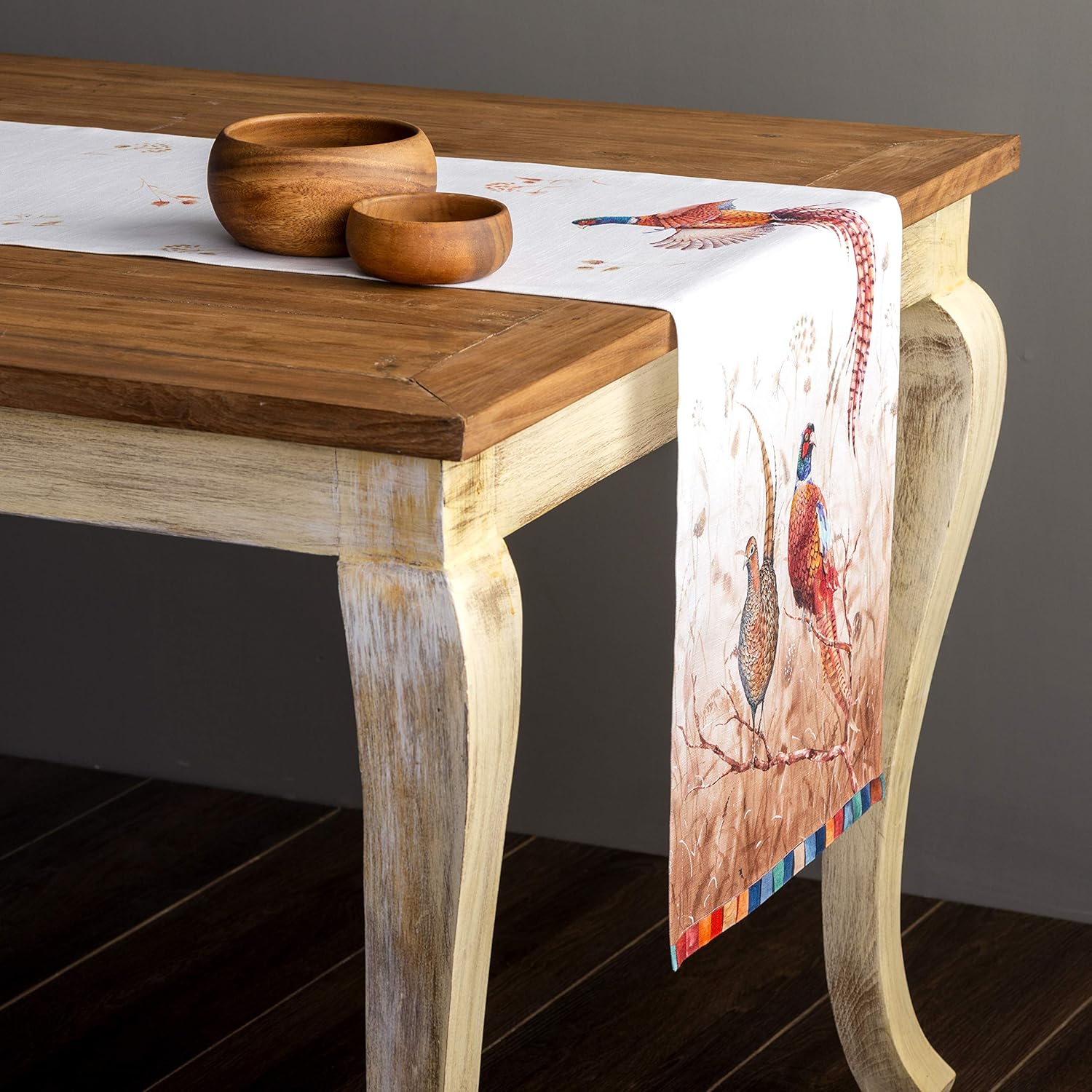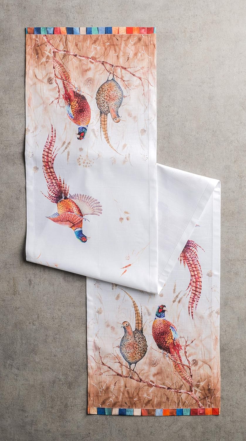 Maison d' Hermine Table Runner 100% Cotton Single Layer Table Runners 90 inches Long Decorative for Home Kitchen Dining Party Baby Shower Wedding Bridal Shower (Faisan D'Automne, 14.50" x 90")