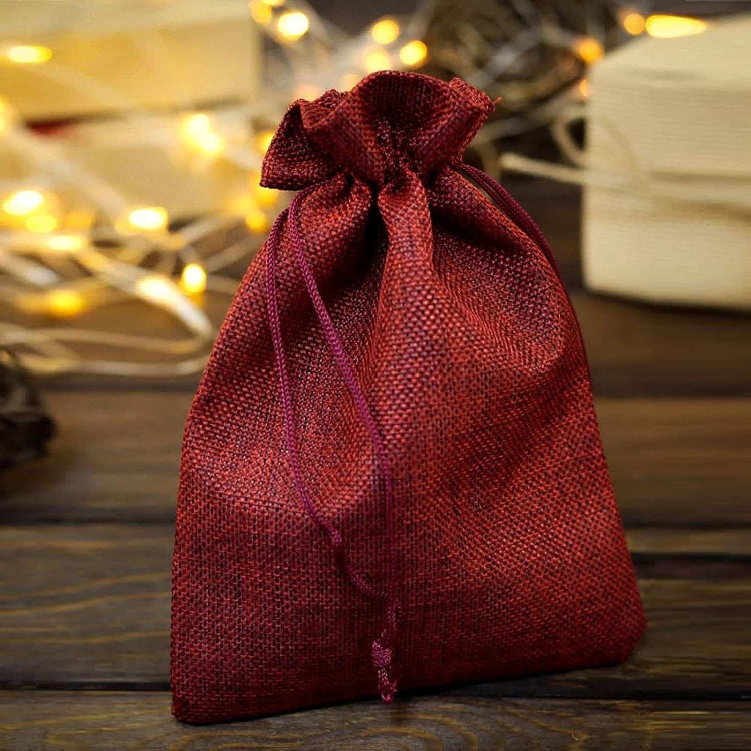 ZOENHOU 30 Packs 8 x 12 Inch Wine Red Burlap Bags Bulk with Drawstring, Drawstring Gift Bags, Dustproof Burlap Sacks for Favors Party DIY Craft