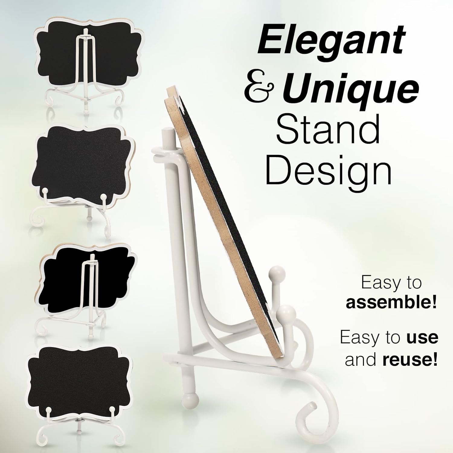 Mini Chalkboard Signs for Food Labels for Party Buffet, Small Place Cards or Name Tags with Iron Stand for Chafing Dish, Mimosa Bar Supplies, Wedding Chalk Board Sign with 2 Pens, 10 Pack White