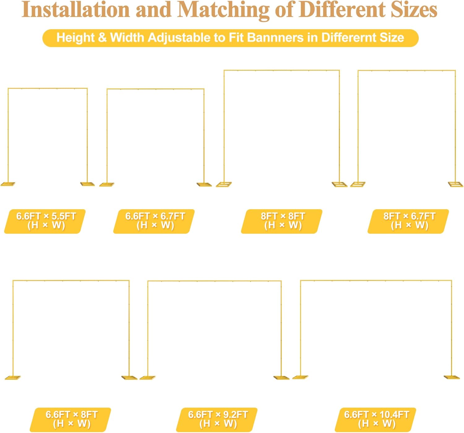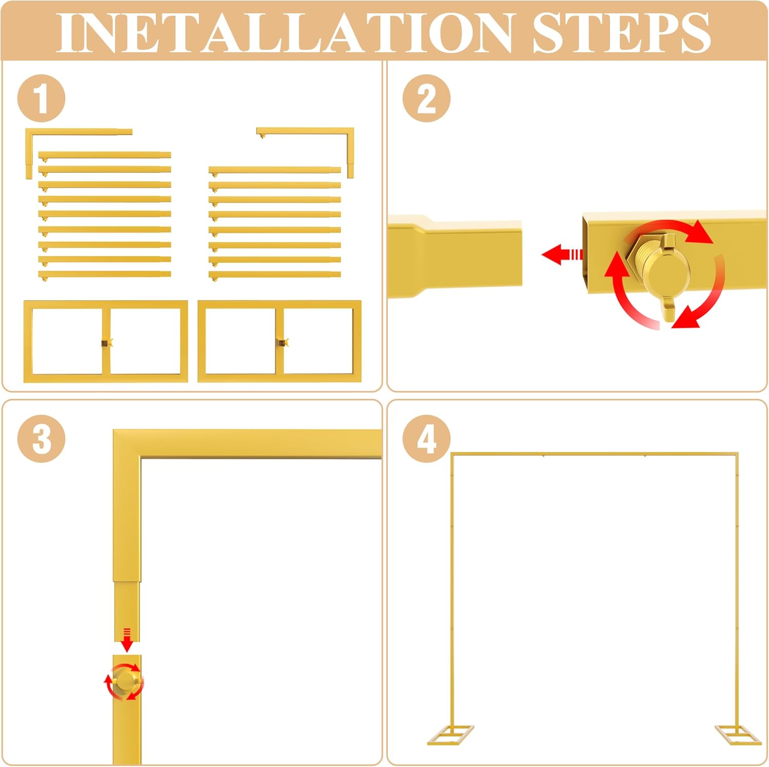 - 【Application】Heavy duty pipe and drape backdrop stand is an ideal choose for weddings, receptions, parties, birthdays, bridal and baby showers, photography, photo booths, banner stand backdrop, business events, etc. Square gold balloon arch stand would be a great scenery at your event!