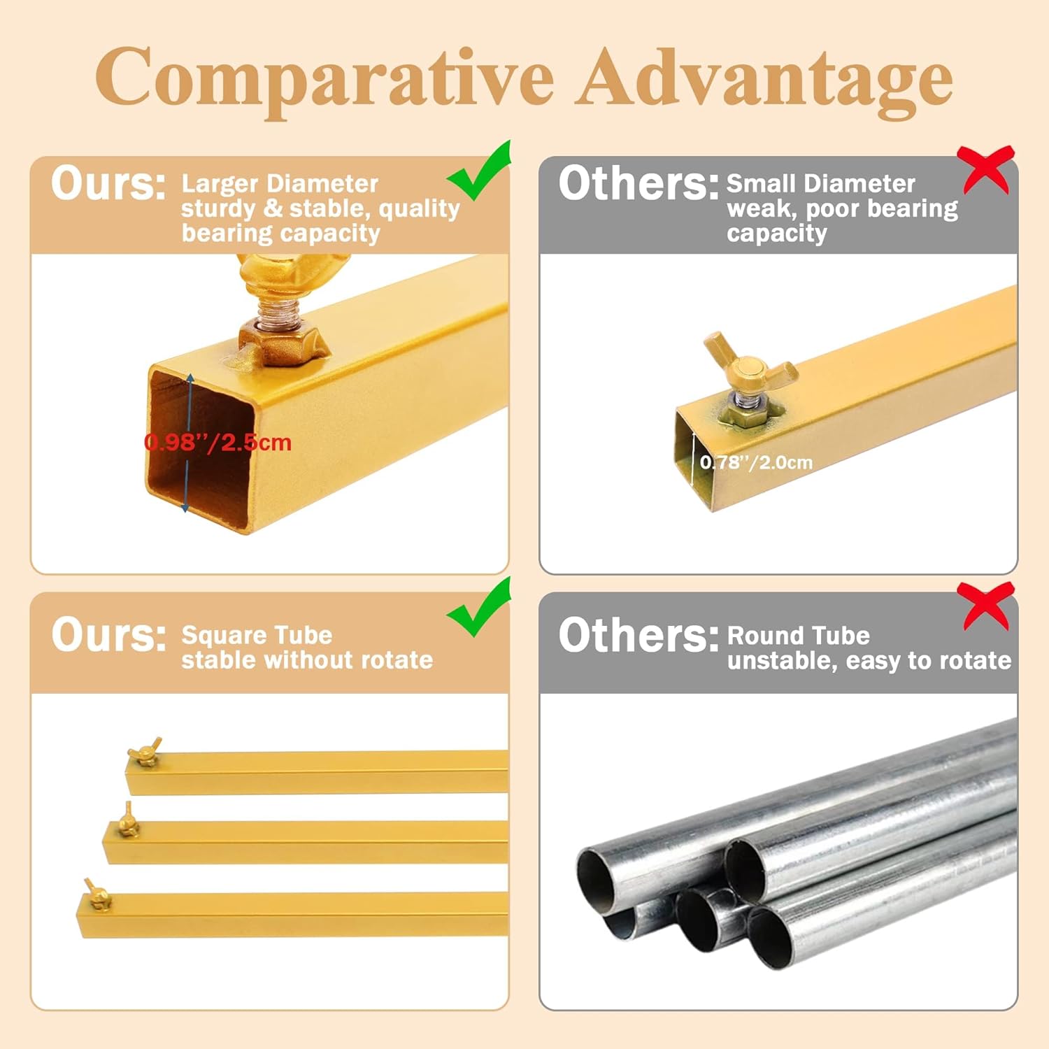 - 【Heavy Duty Backdrop Stand】8x8 ft/2.4x2.4 M square backdrop stand heavy duty with base is made of 1.0mm thick high toughness and anti-rust square steel pipe, more stable than circular tube without easily twist. Sturdy base legs provides a firm and balanced support of gold wedding arch stand, safe and secure.