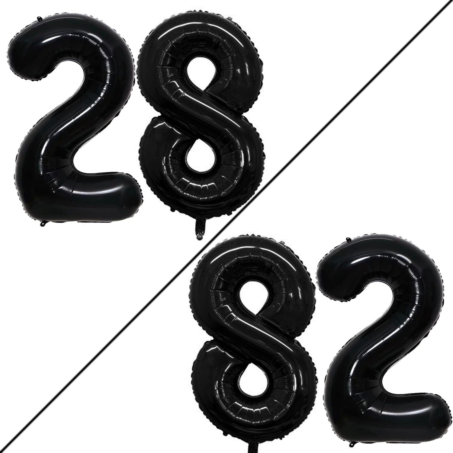 GOER Number 28 Balloons for 28th Birthday Party Decorations,42 Inch Jumbo Foil Helium 82 Balloons for 82nd Birthday Party Decoration (Black)