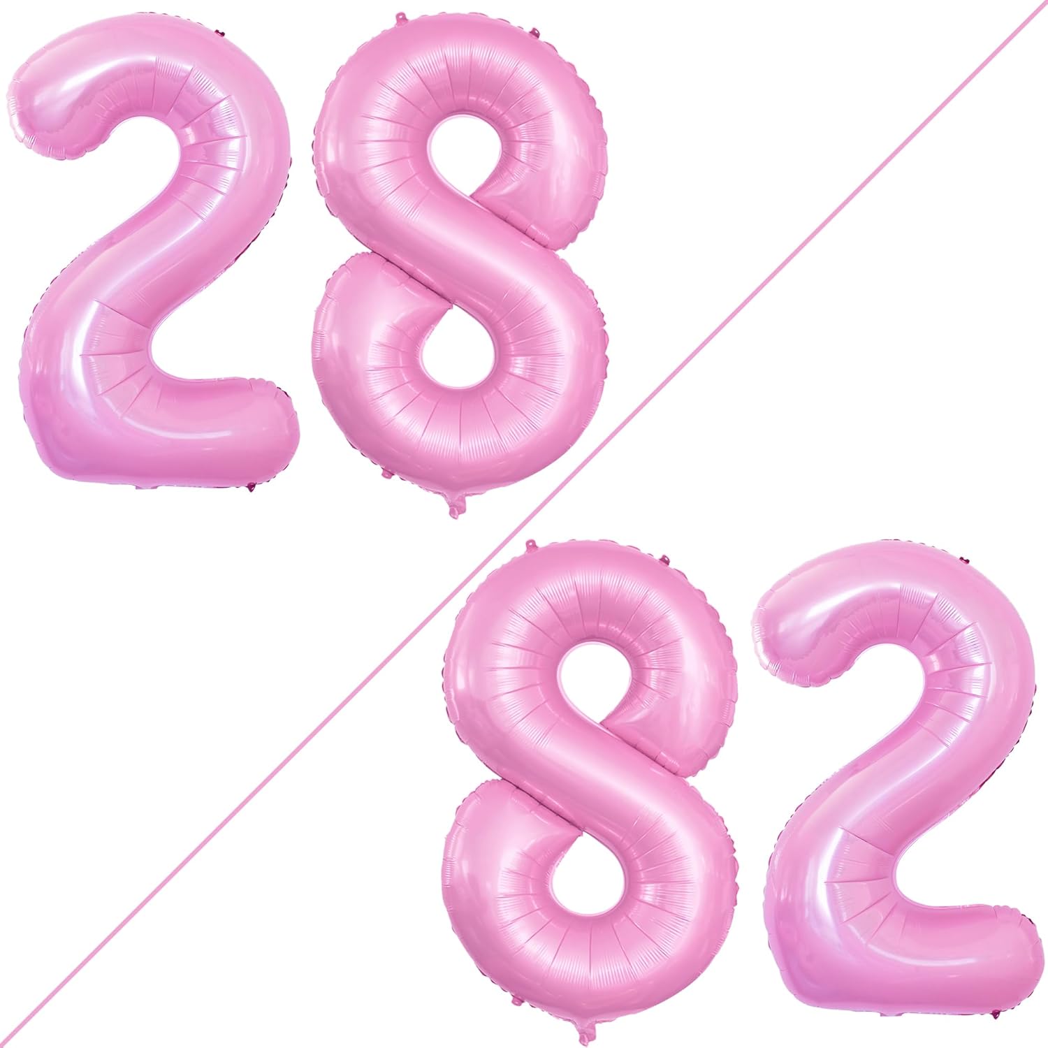 GOER Number 28 Balloons for 28th Birthday Party Decorations,42 Inch Jumbo Foil Helium 82 Balloons for 82nd Birthday Party Decoration (Light Pink)