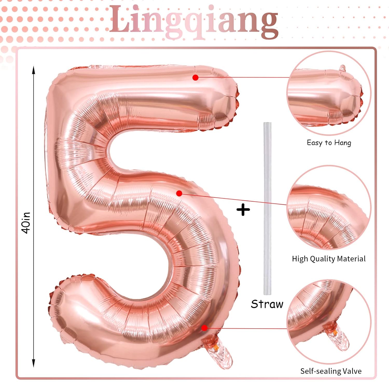 - π Rose Gold Number 5 Balloon π - You will get 1pc 40 inch mylar foil number 5 balloon and 1pc straw. Perfect for 5th 15th 25th 50th 45th birthday or anniversary party decorations supplies.