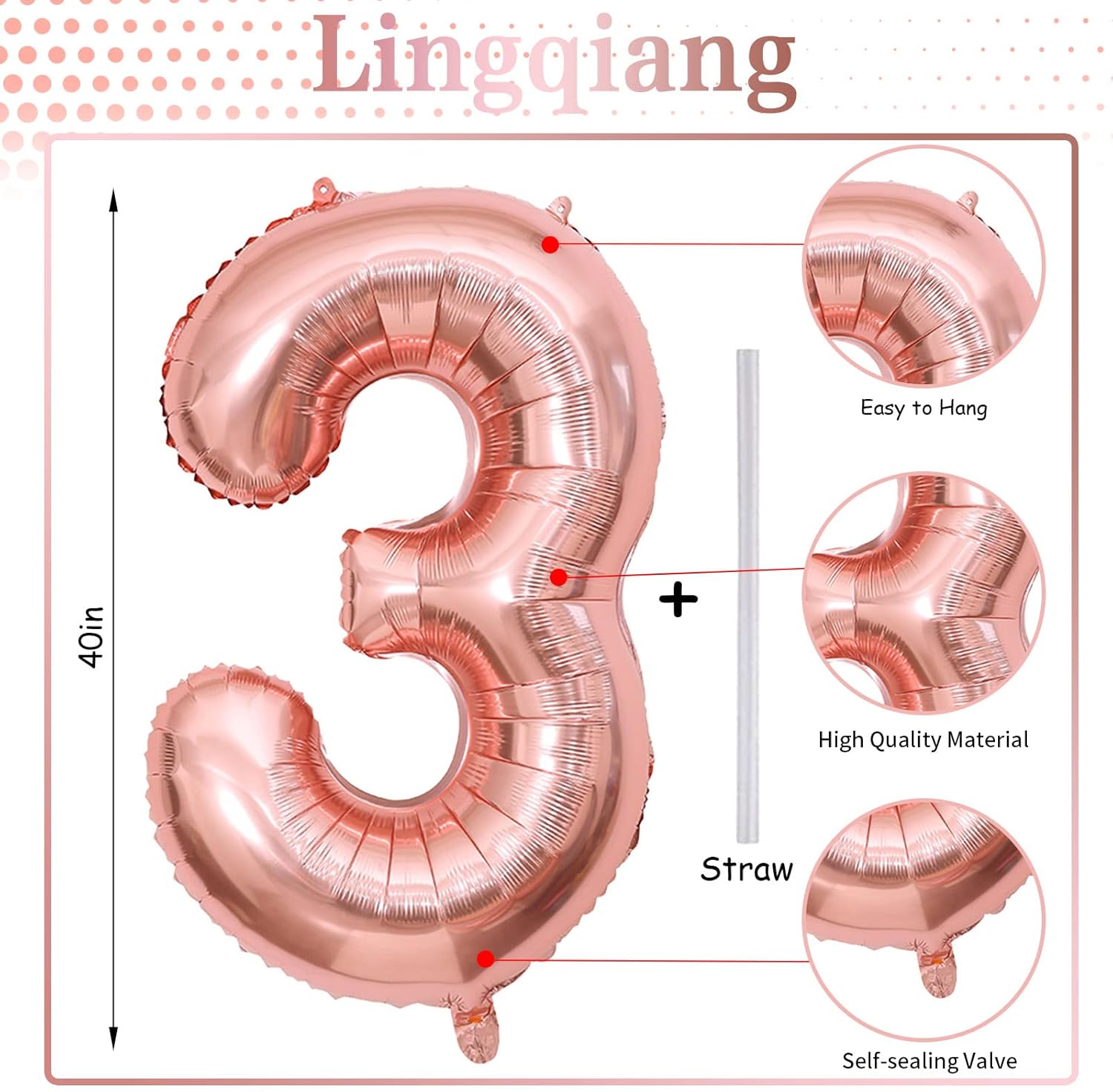 - π Rose Gold Number 3 Balloon π - You will get 1pc 40 inch mylar foil number 3 balloon and 1pc straw. Perfect for 3rd 13th 30th 35th birthday or anniversary party decorations supplies.