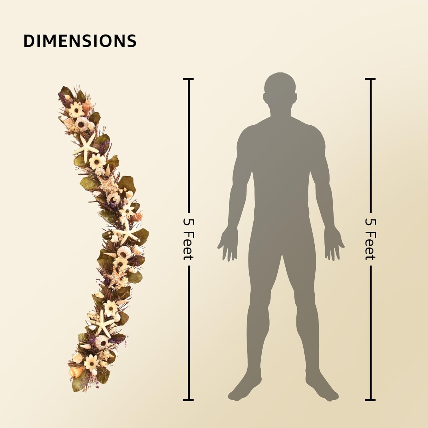 - VERSATILE DECOR PIECE – Perfect for mantels, doorways, or as a centerpiece, this garland effortlessly enhances any area. The fusion of seashells, dried flowers, and woodshavings flowers transforms your home with a breezy summer vibe.