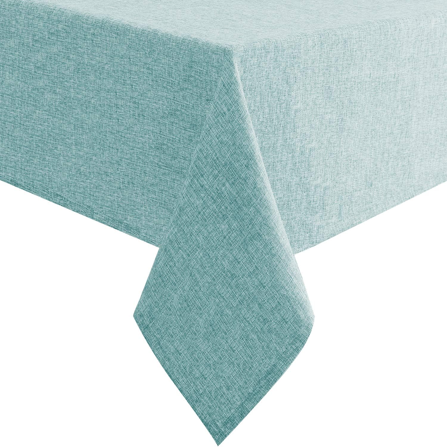 Hiasan Faux Linen Rectangle Tablecloth - Wrinkle and Stain Resistant Washable Table Cloth for Kitchen Dining Room Holiday Table Cover for Dinner, Aqua, 60 x 140 Inch