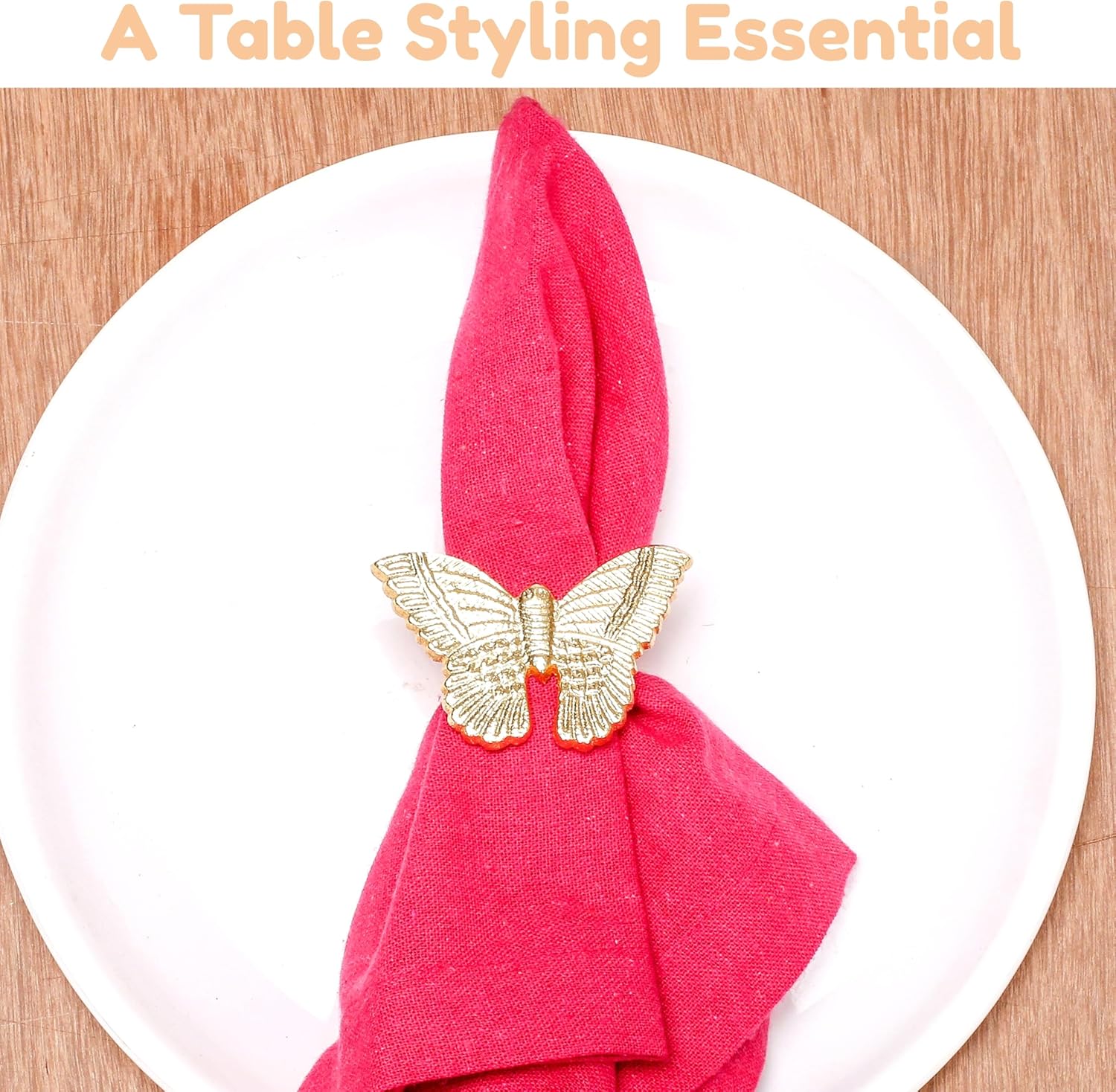 12 Pcs Gold Napkin Rings Set - Lightweight Metal Butterfly Bling Napkin Rings Guest Napkin Buckle for Wedding, Party, Gathering, Dinner, Table, Banquet, Decoration, Gifting - CLEENTABLE