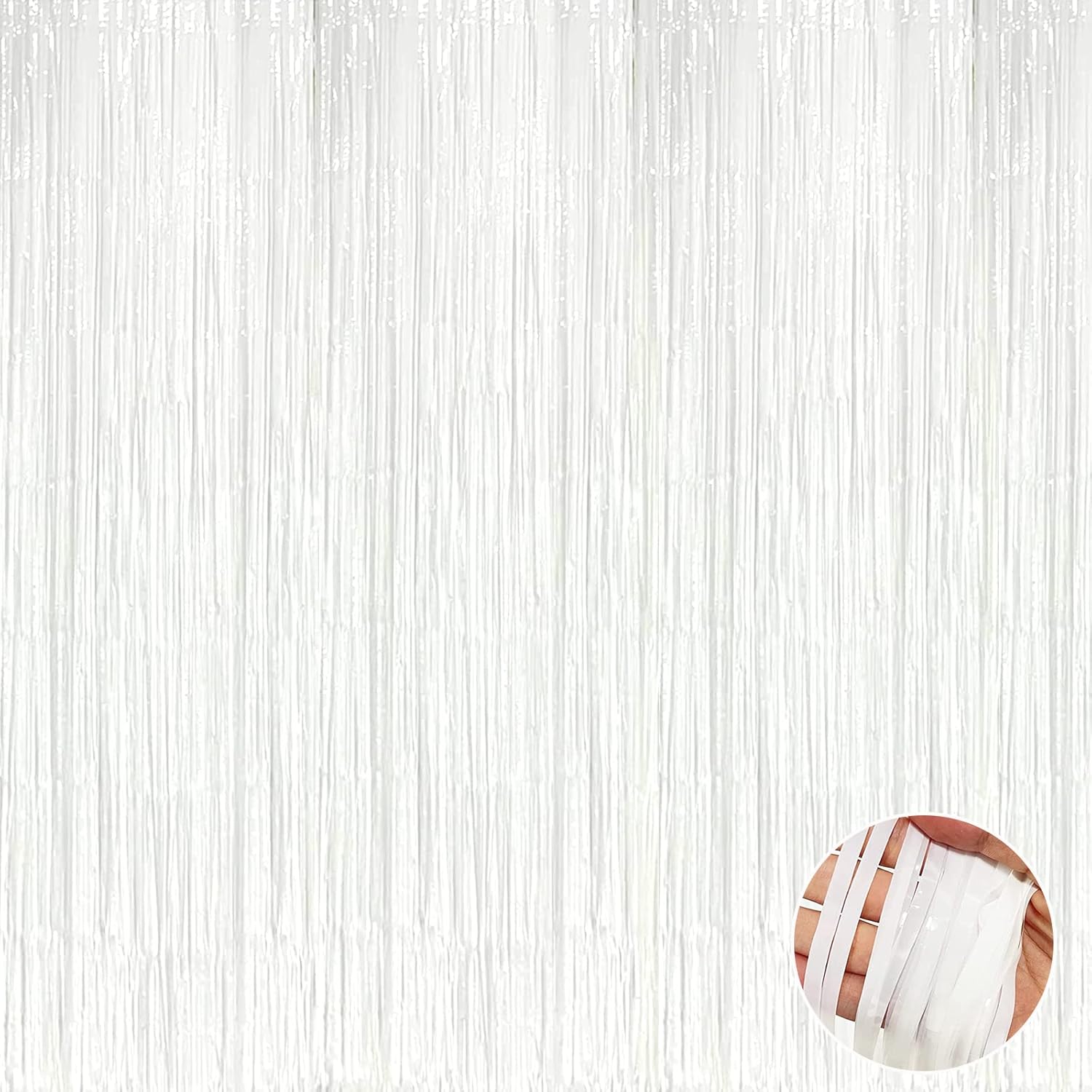 4 Pack White Foil Fringe Curtain Backdrop, 3.3Ft x 9.8Ft Metallic Tinsel Streamers Curtains for Photo Booth, Wedding, Thanksgiving, Birthday, Christmas Party Decoration, One Size