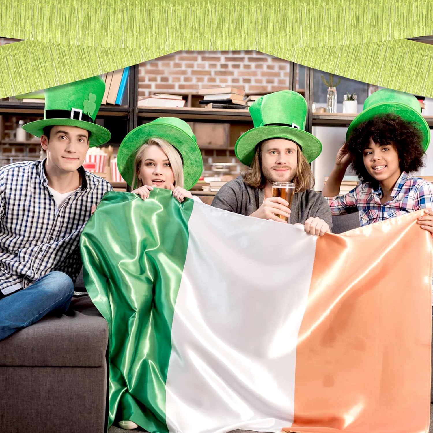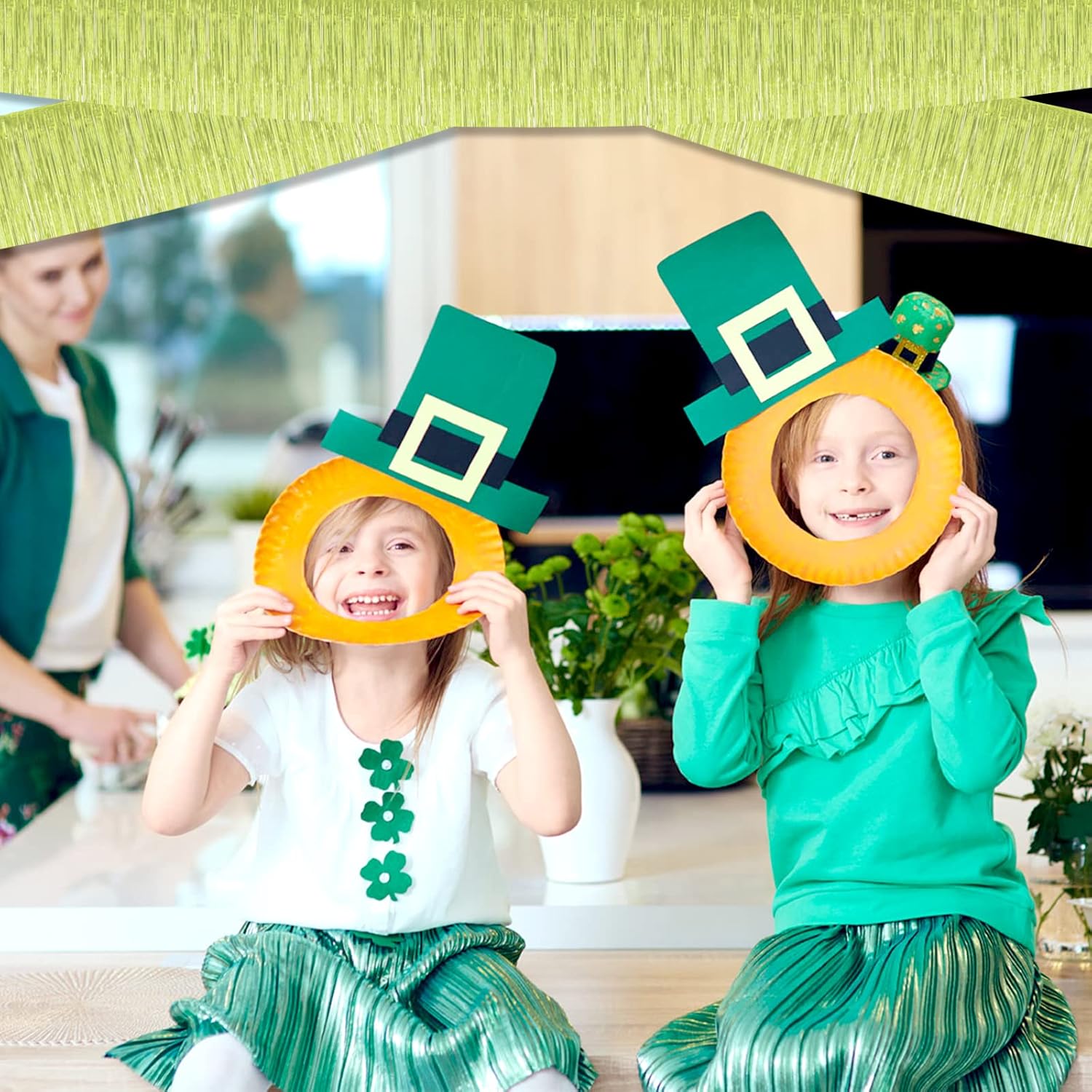 10 Pack 10 Feet Foil Fringe Garland Metallic Tinsel Streamers Banner Wall Hanging Curtain Backdrop for Parade Floats, Wedding, Disco, Birthday, St Patrick Day, Christmas Party Decorations(Light Green)