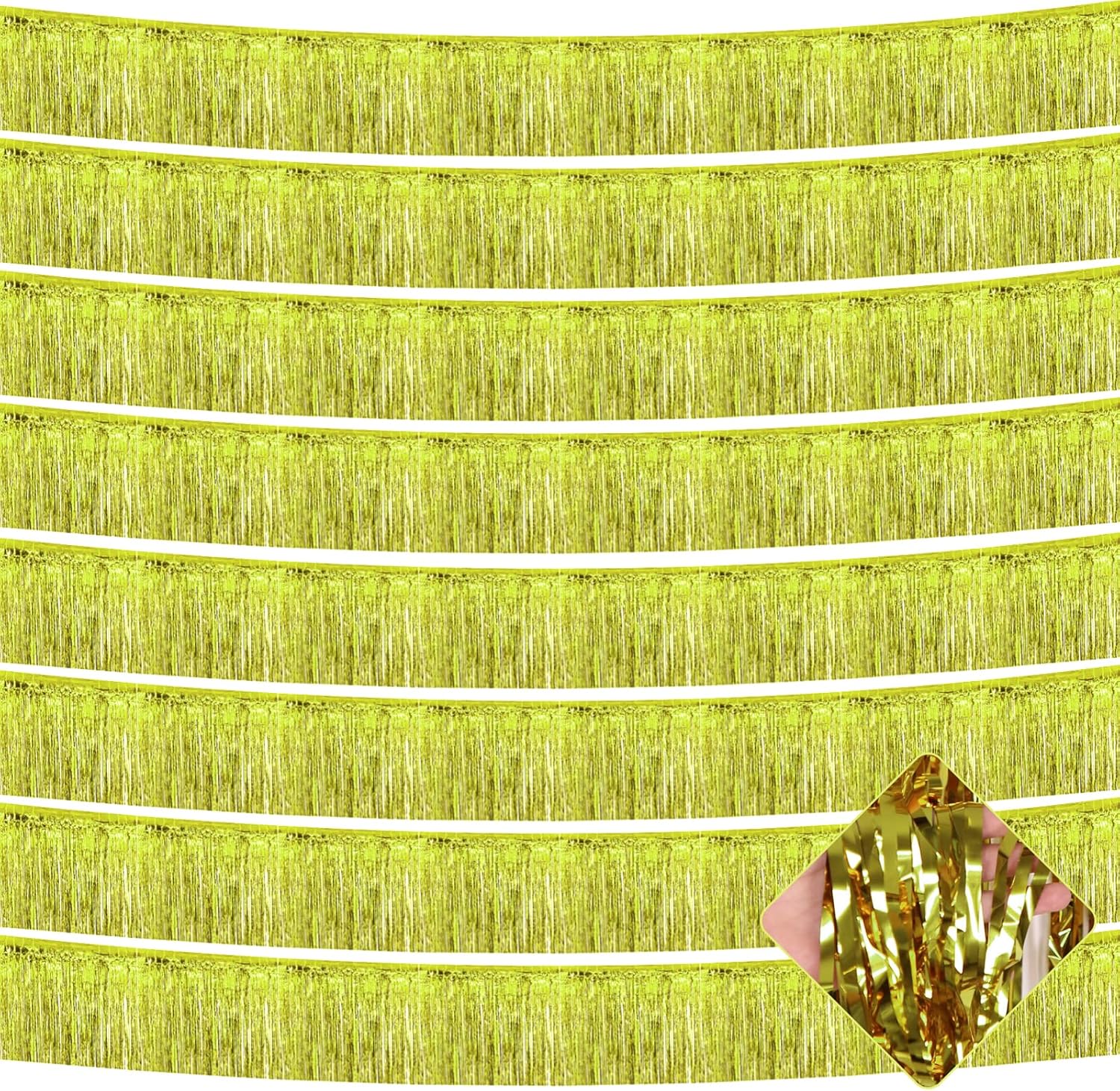 10 Pack 10 Feet Foil Fringe Garland Metallic Tinsel Streamers Banner Wall Hanging Curtain Backdrop for Parade Floats, Wedding, Disco, Birthday, Halloween, Christmas Party Decorations(Light Gold)