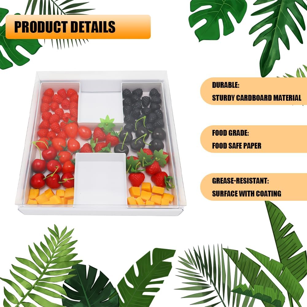 - As container tray for cupcake, sweet, strawberries, grazing, charcuterie tray