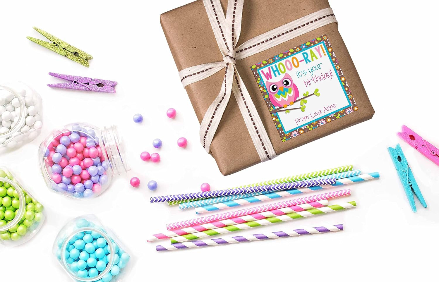 - Cuteness Overload: Designed by a talented mom, these cute stickers feature an adorable birthday owl design. The clever message of "WHOOO-RAY" it's your birthday is the perfect way to honor the birthday boy or girl. Each sticker will be custom printed and personalized just for you! Amanda Creation. Original design by Amanda Creation.