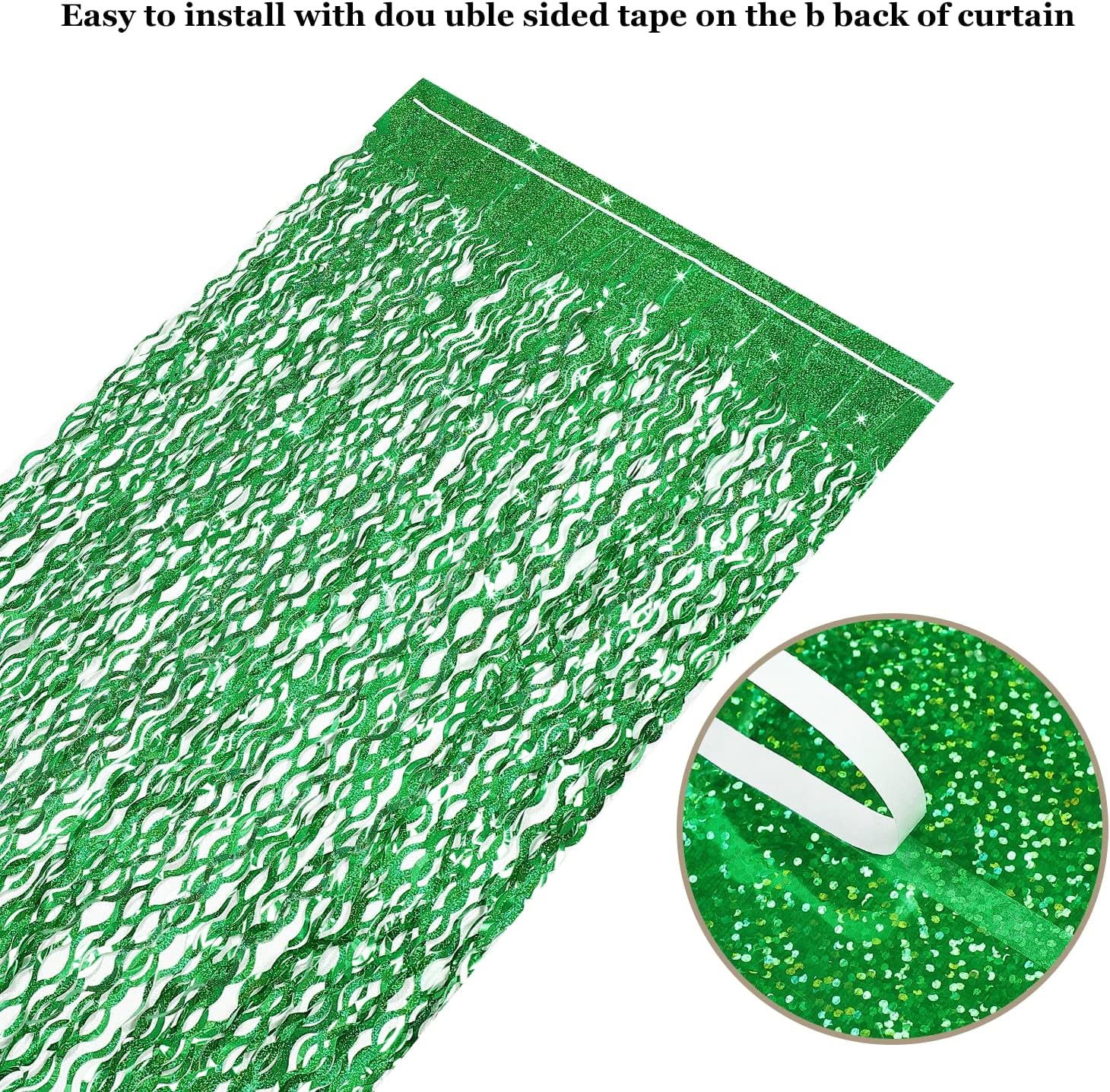 - Packing Included: 3 packs Green tinsel foil fringe curtains party photo backdrop,Each pack curtains size is 3.3ft x 6.6ft, enough length for decorate your party