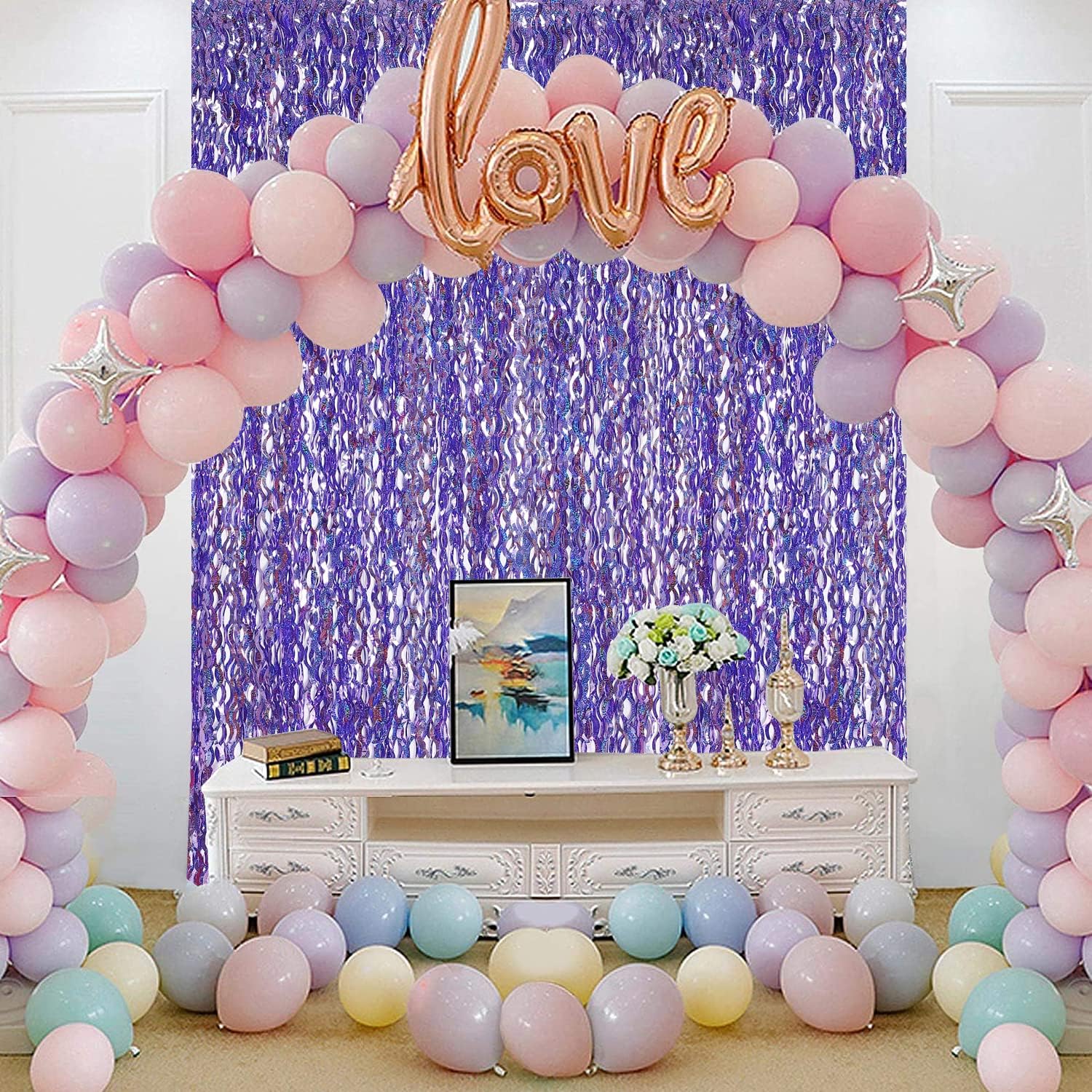 - Packing Included: 3 packs purple tinsel foil fringe curtains party photo backdrop,Each pack curtains size is 3.3ft x 6.6ft, enough length for decorate your party