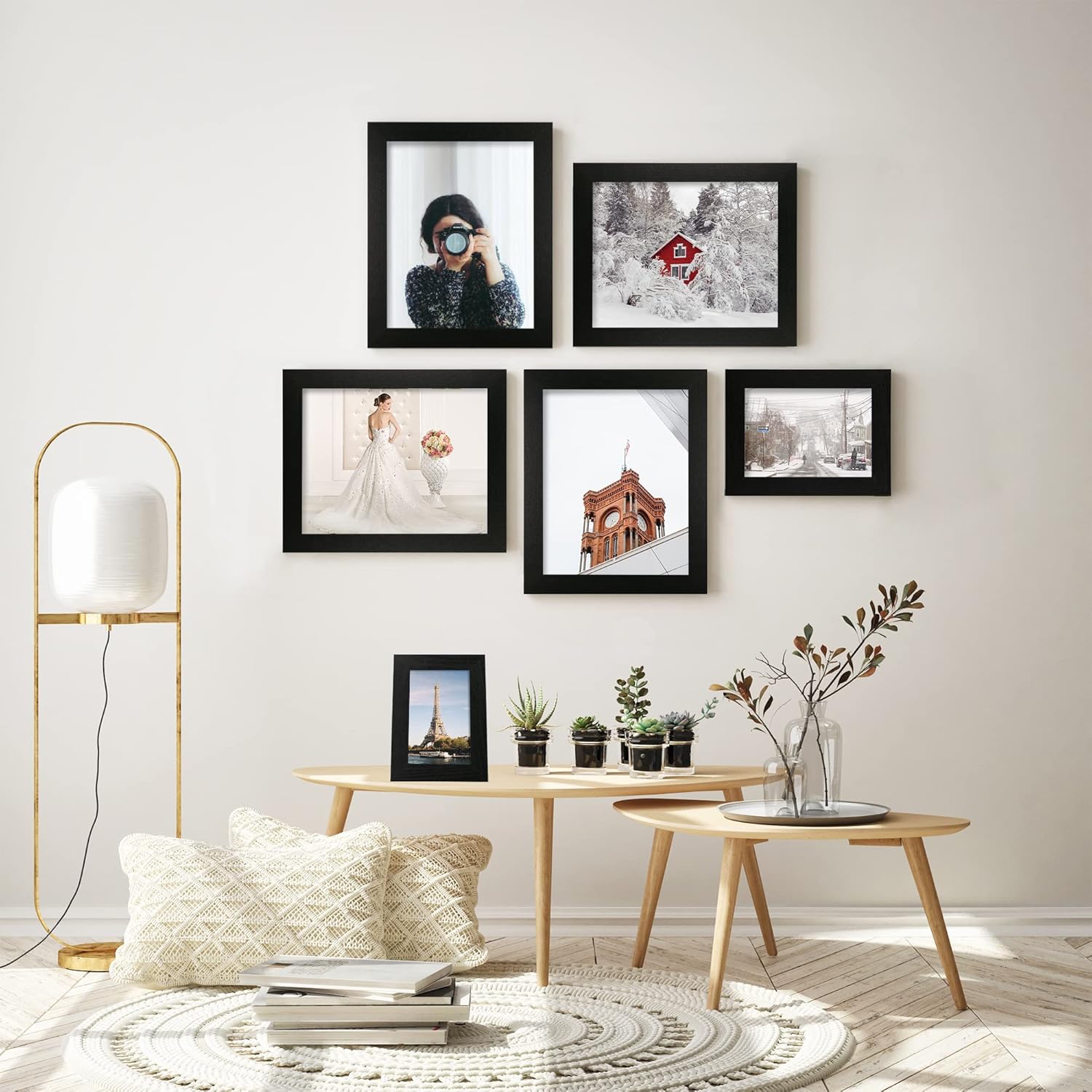 - Multi Frames Collage Set: Includes 4 frames in the same size. Perfectly fits 5x7 inch pictures without mat. The frame opening display size is 0.5 inches smaller than the photo size for secure mounting.
