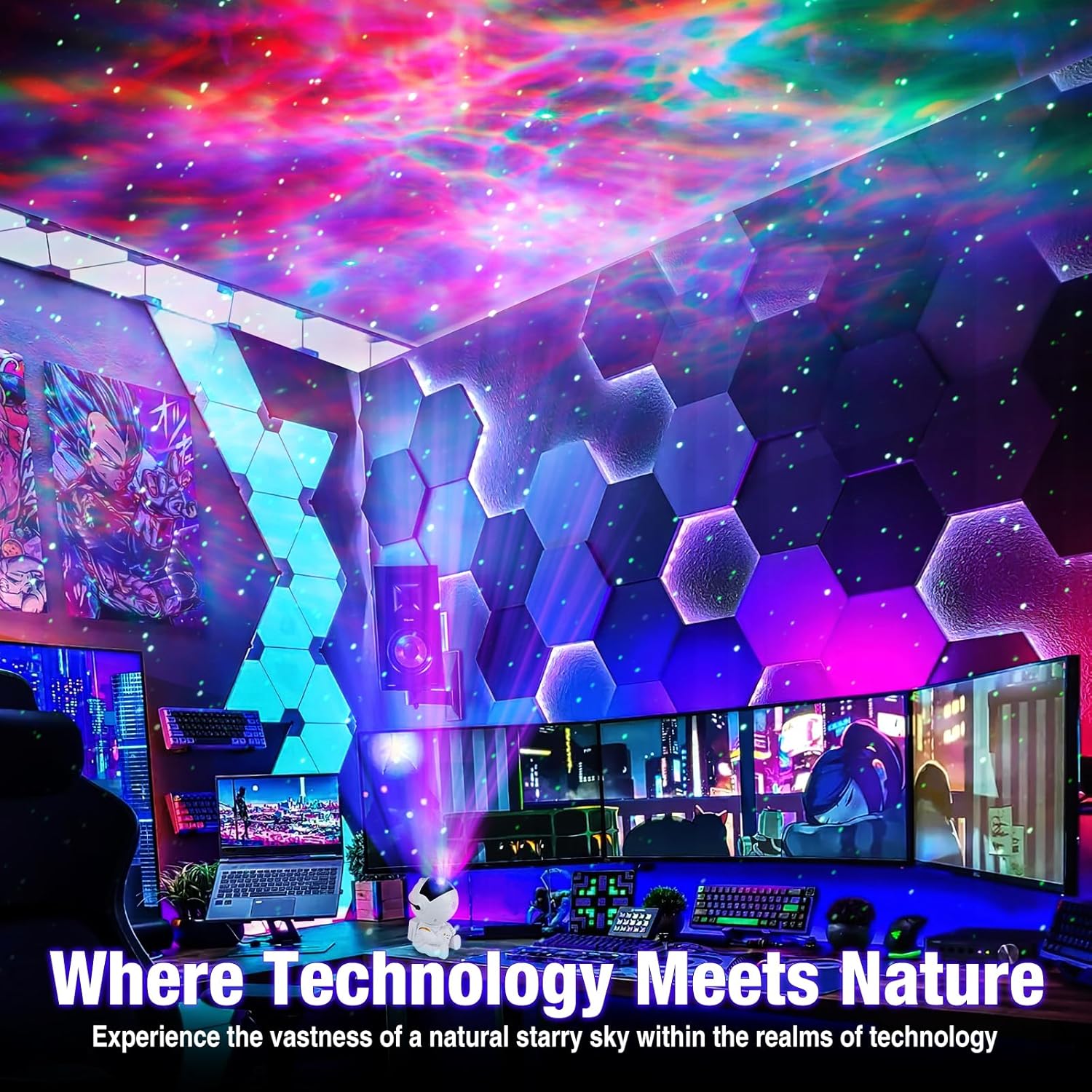 - 2. Stunning Galaxy & Nebula Effects – Adjustable Projection Transform your room into a breathtaking galaxy with nebula clouds and starry skies. The astronaut’s head is adjustable, allowing you to shine the light on the ceiling or walls at different angles. Perfect for kids’ bedrooms, nurseries, or living rooms to create a dreamy atmosphere.
