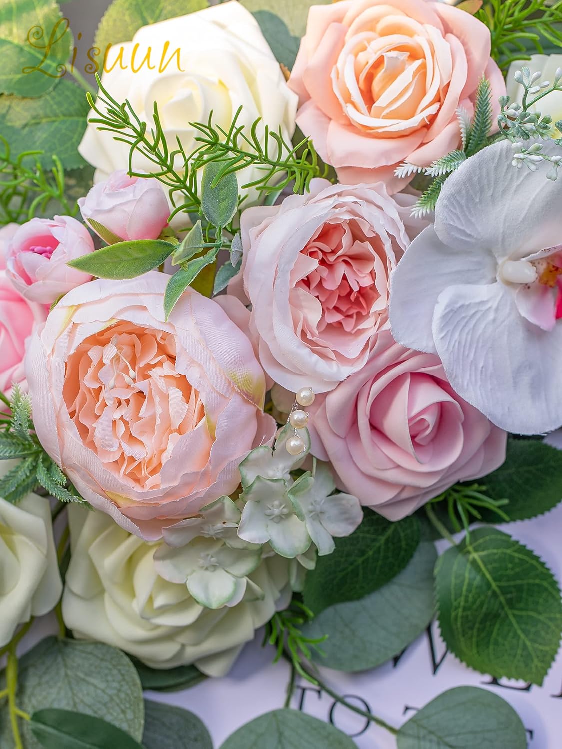 - Premium Materials:The floral swag is made of high-quality silk,and the main flower is composed of blush peony,pink and milky white rose,which are perfectly matched with more than ten kinds of small flowers,leaves,and green vines.They are durable,soft,plump,beautiful and lifelike.