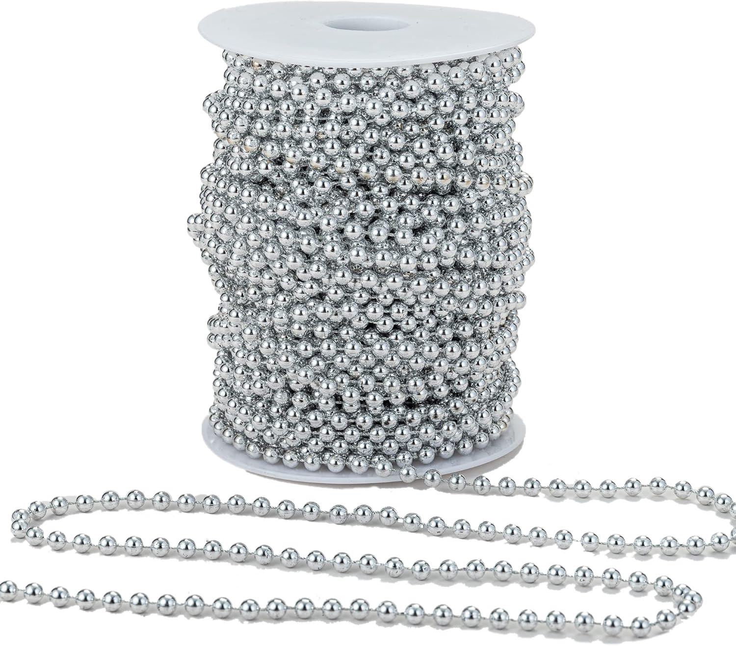 5mm Crafts Faux Pearl Beads Garland Pearl Bead Roll Strand of Pearls to Decorate Floral Centerpieces Wedding Party Favor Christmas Tree(99 Feet Silver)